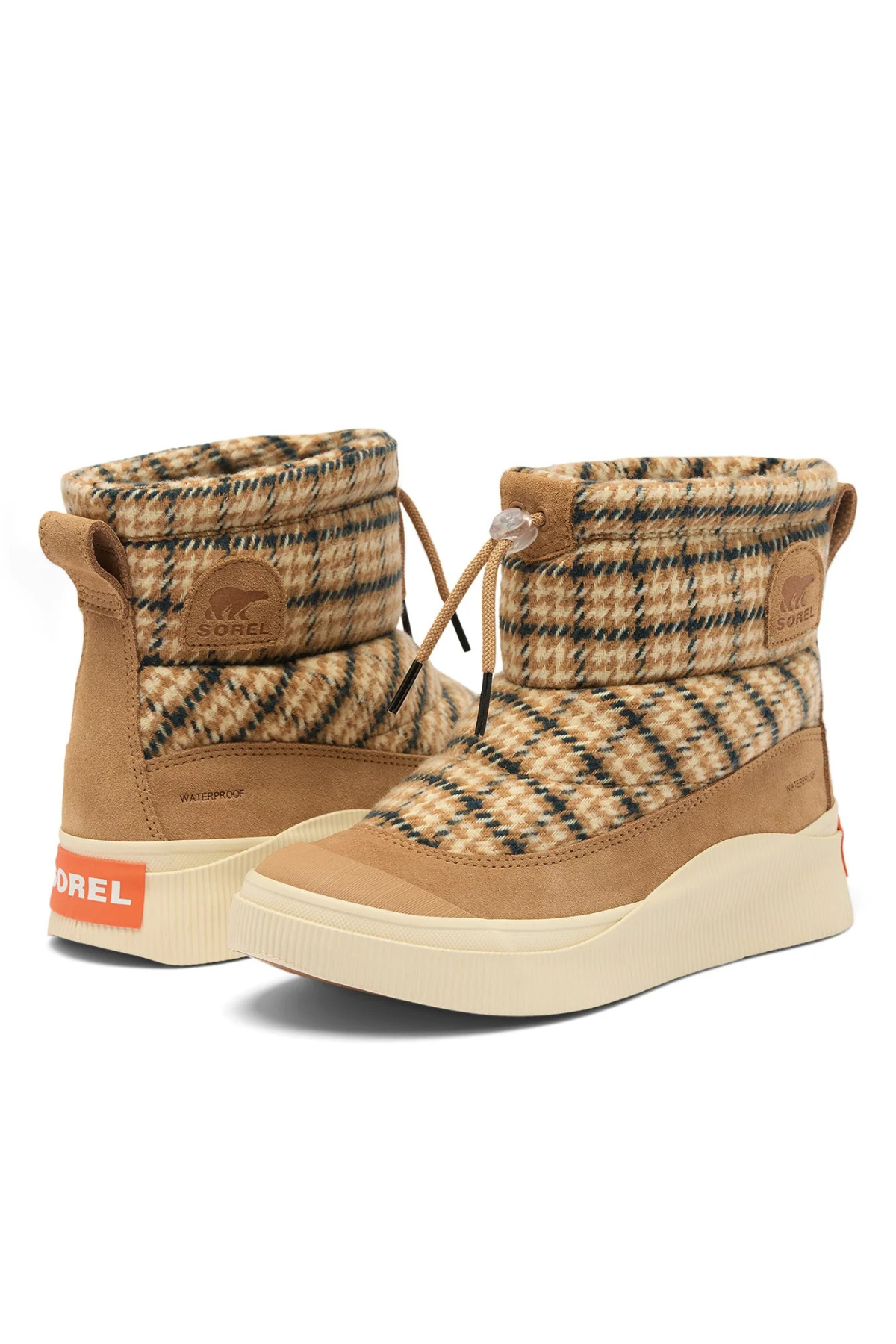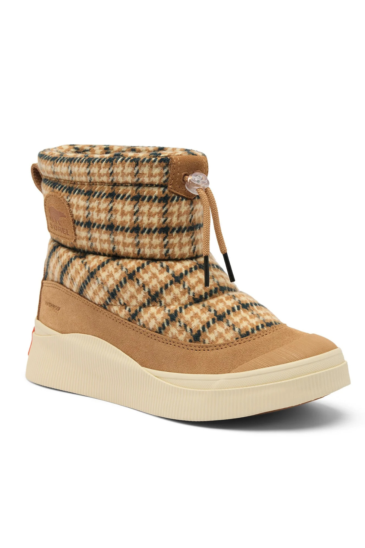 It's all puff, no fluff with the SOREL® Out N About Iv Puffy Waterproof boots. Their playful silhouette brings not only a modern vibe but also ultra warmth to brave the elements. These ankle boots are made of a molded PU STEADYSOLE™ footbed with vulcanized rubber foxing tape, cushioned insole, and fleece lining. The canvas upper features synthetic overlays and an adjustable drawstring with a toggle closure. Their waterproof bootie construction keeps your feet comfortable and dry, while the 200g insulation offers long-lasting warmth. These lace-up ankle boots are a perfect choice for your outdoor rides.