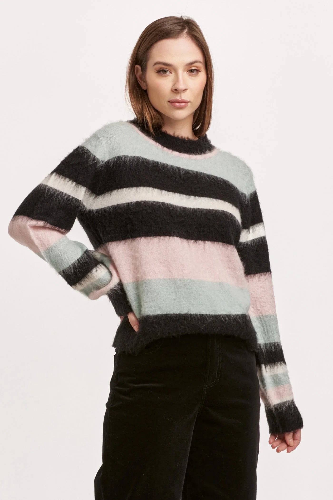 Introducing the Alicia crew neck long sleeve relaxed fit sweater, perfect for those cozy days. This stylish sweater offers a comfortable and laid-back silhouette, effortlessly combining warmth and versatility for any wardrobe. Ideal for layering or wearing solo, it's a go-to piece for both casual outings and lounging at home. Relaxed fit designed to provide ultimate comfort and ease of movement.