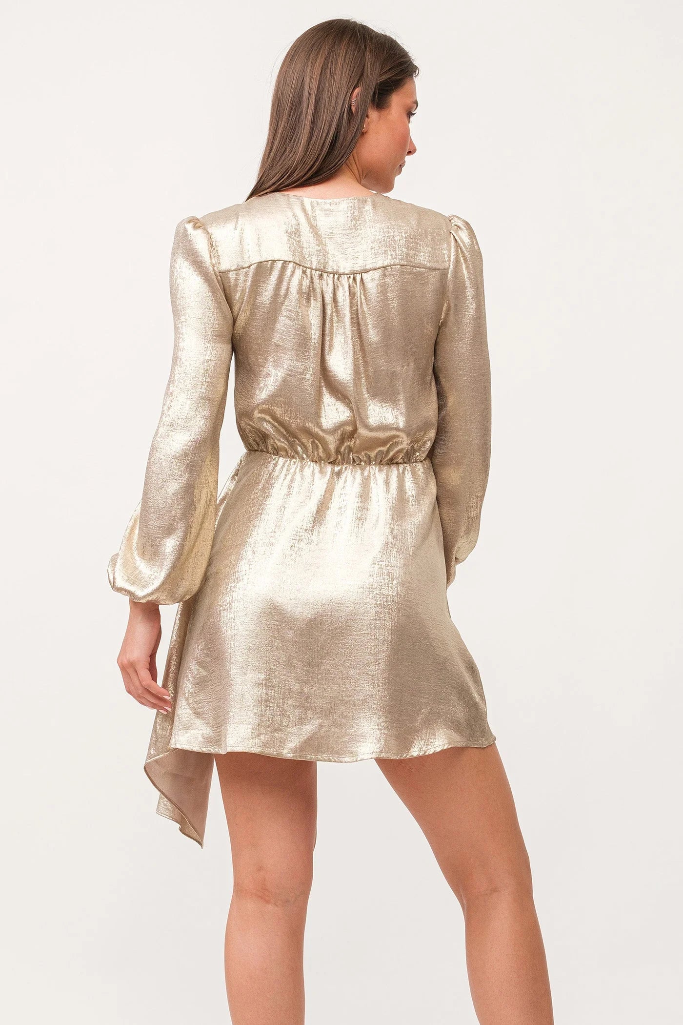 The Chiara V neck long sleeve classic fitting dress in gold is a wardrobe essential. Featuring a stylish V neckline and comfortable long sleeves, this mini dress is designed for flattering fit for all-day wearability. The shimmering metallic hue adds an elegant touch, perfect for special occasions or a night out. Versatility meets comfort, making this dress a go-to staple for any lifestyle!