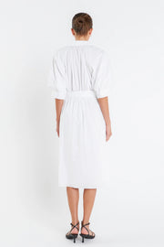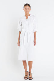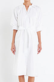 Shirringed Short Sleeves Shirt Dress