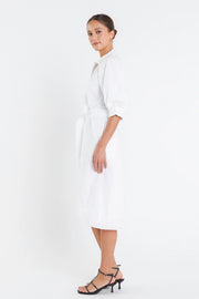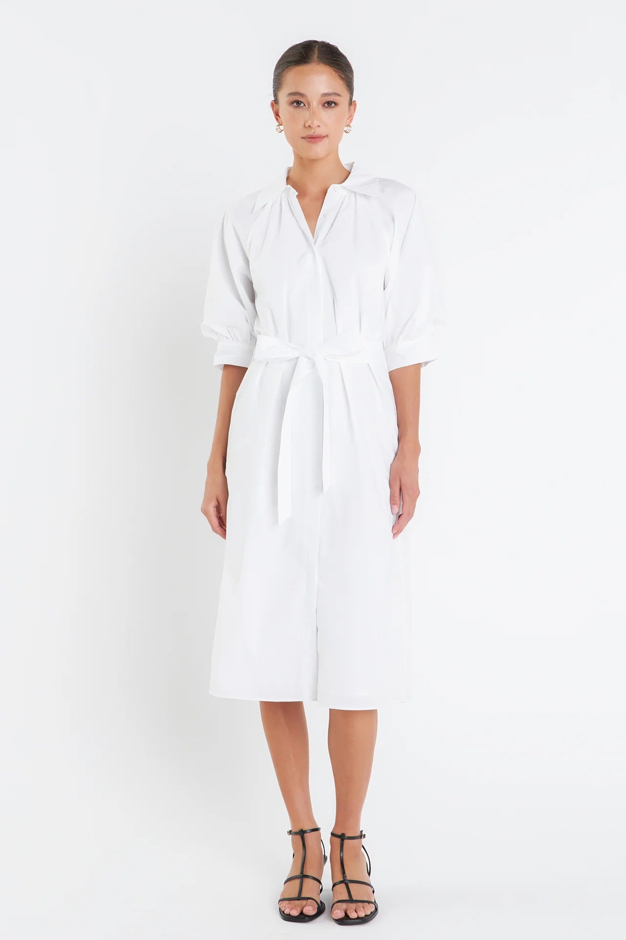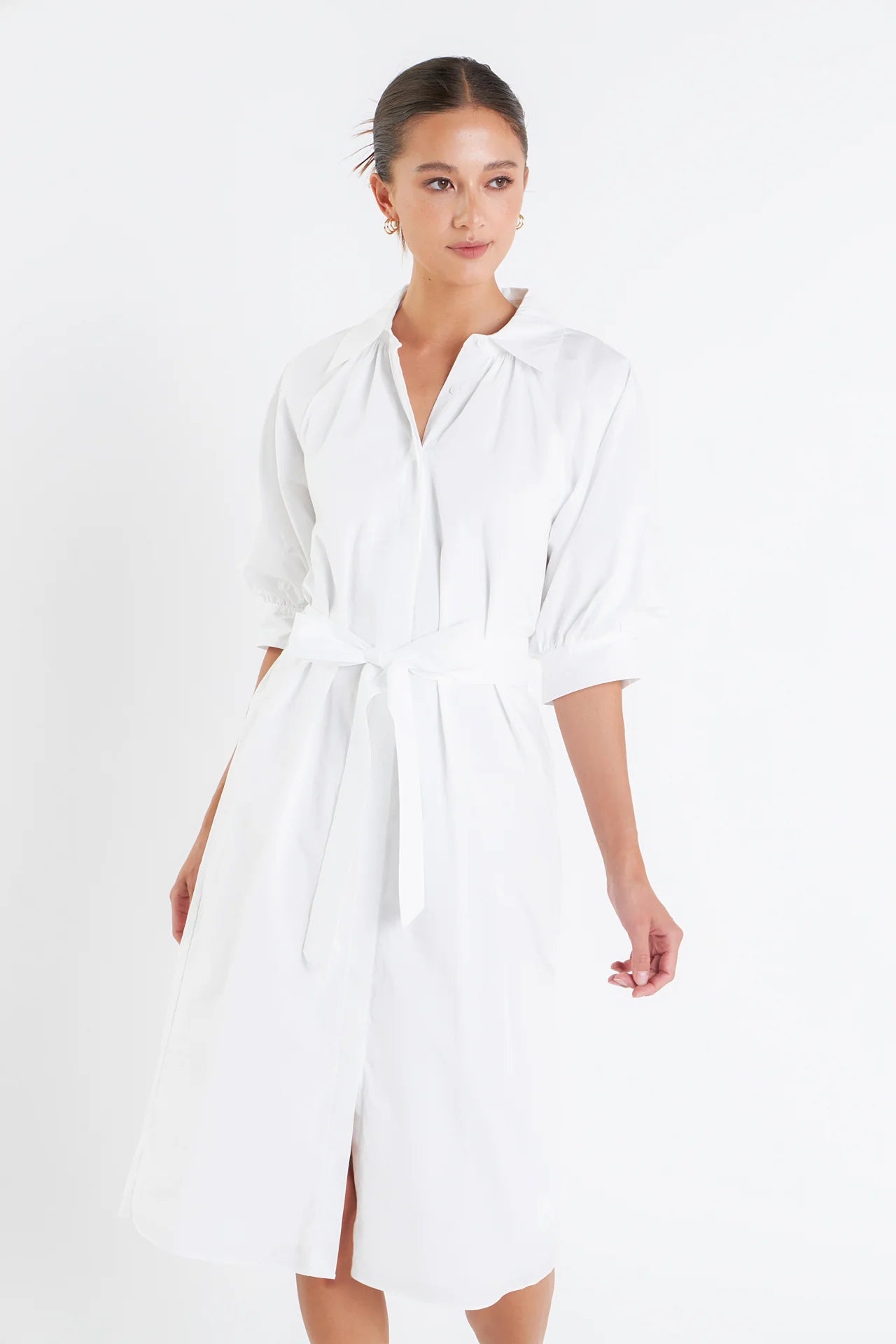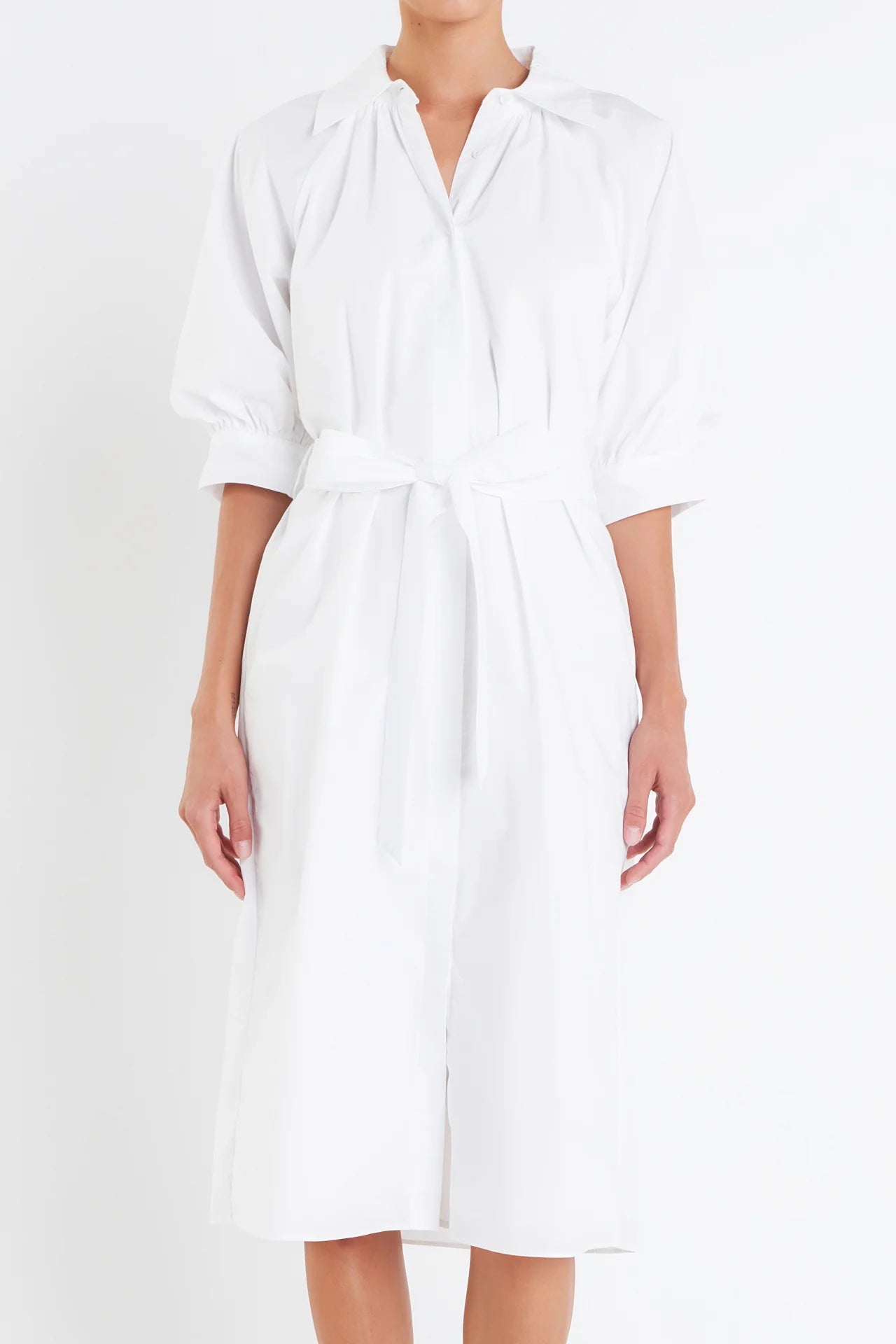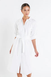 Introducing our newest must-have dress the Shirringed Short Sleeves Shirt Dress. The classic collared neckline is updated with a modern twist of short balloon sleeves and raglan sleeves. The shirring details on the sleeves add a touch of femininity while the cuffs band keeps the look polished. Perfect for any occasion this dress is both stylish and comfortable. Available in a range of sizes and colors this dress is sure to flatter any body type. Complete your wardrobe with this versatile dress that is bound to turn heads.