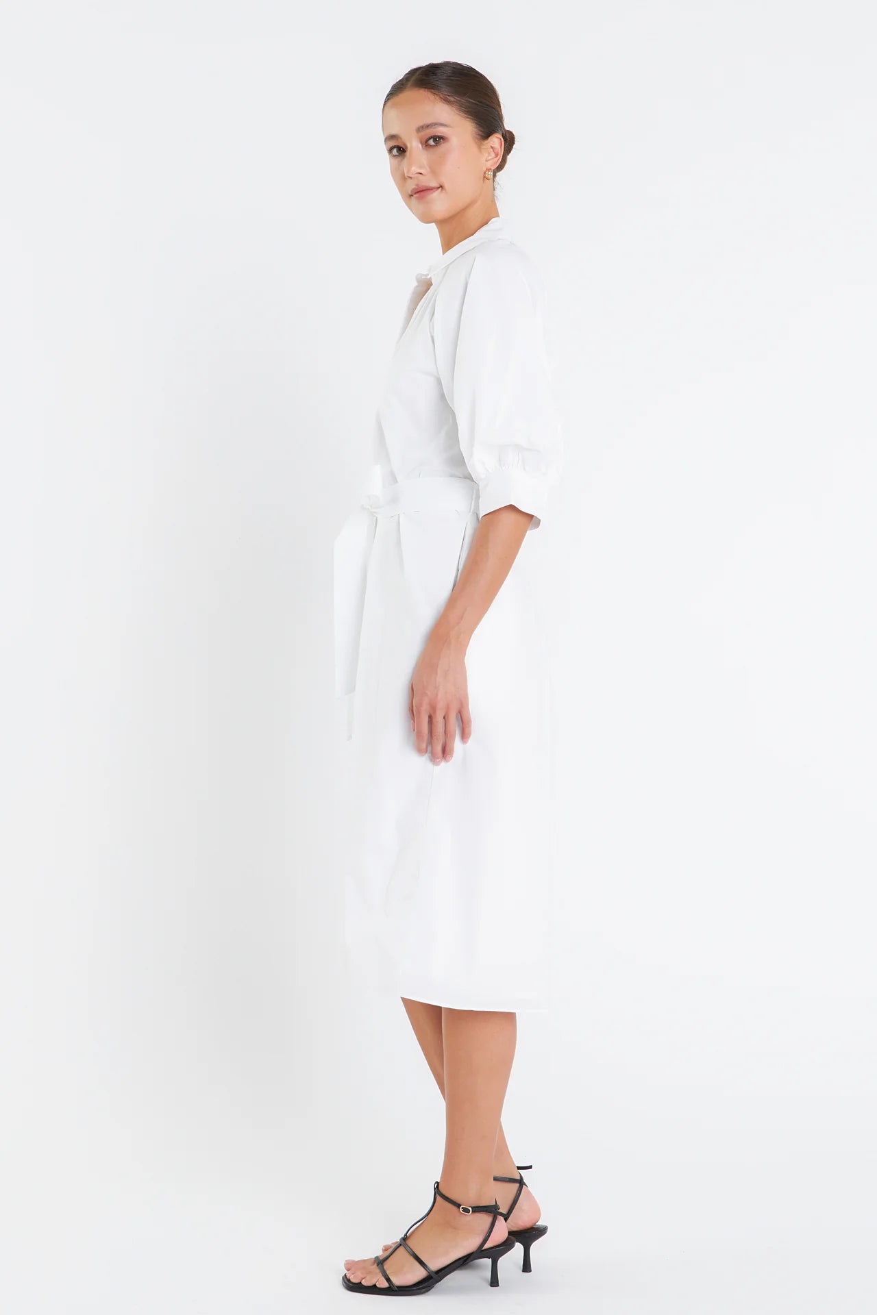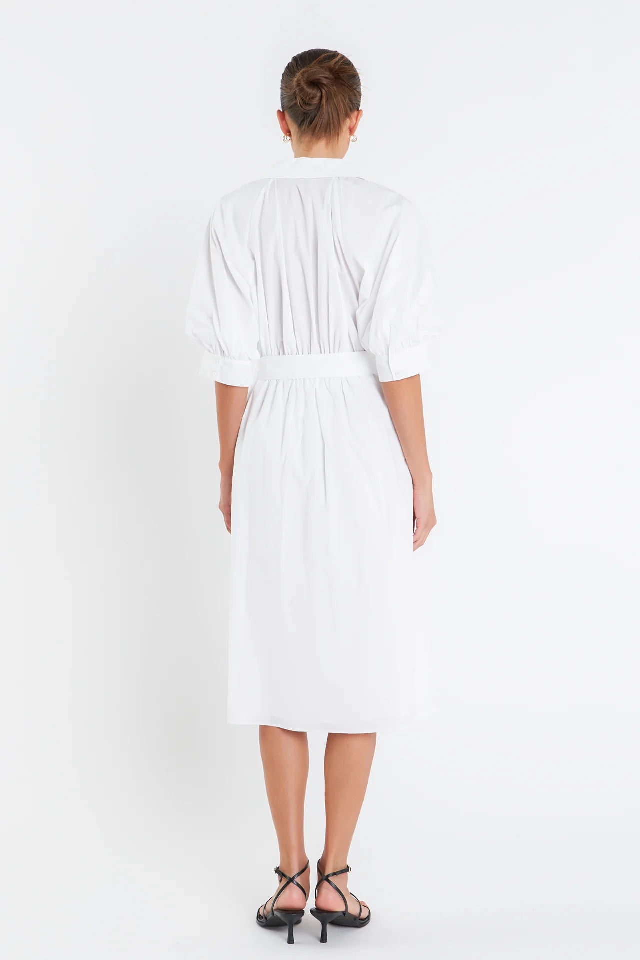 - Short balloon sleeves with cuffs band
