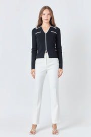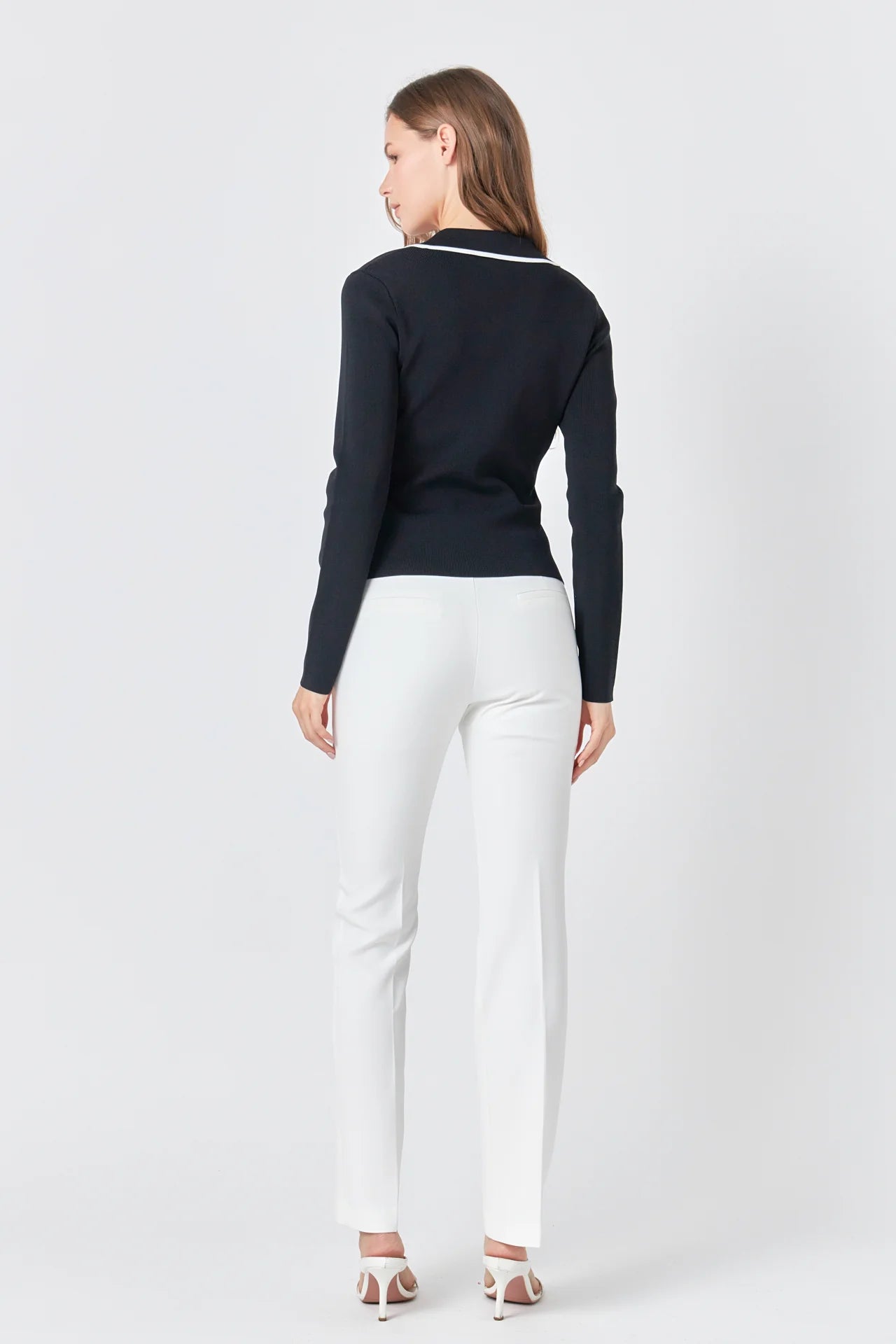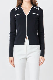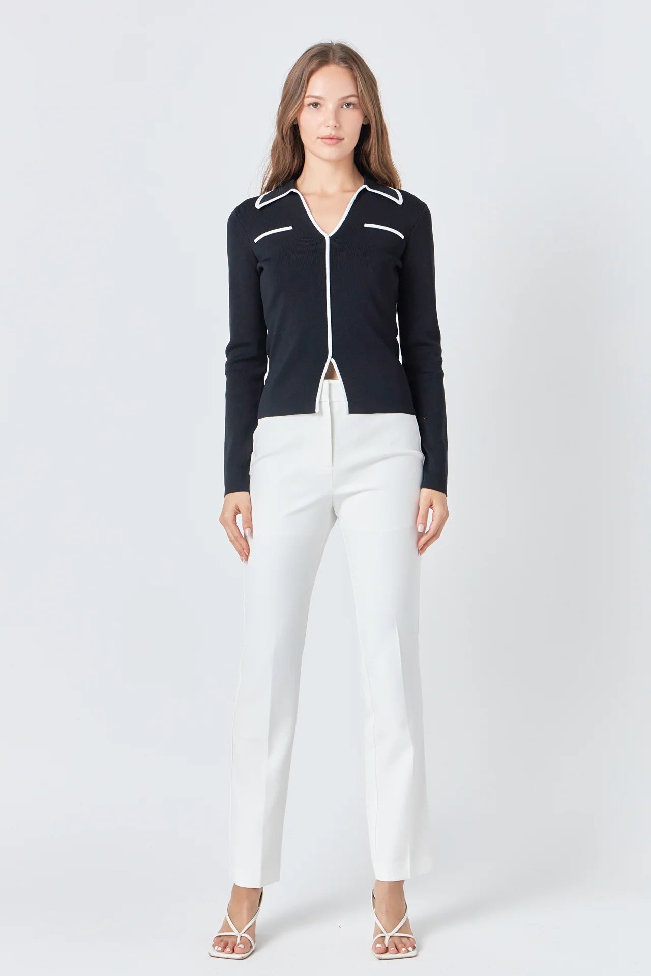 Elevate your wardrobe with our Binded Collared Top. Crafted with a luxurious knit fabric, this top is perfect for both casual and formal occasions. The collared neckline adds a touch of sophistication, while the binding detail creates a tailored look. With long sleeves, this top is suitable for year round wear. Perfect for layering or dressing up on its own, this top is a must-have for any fashion-forward individual. Don't miss out on this versatile and trendy piece. Shop now and add it to your collection of stylish tops!