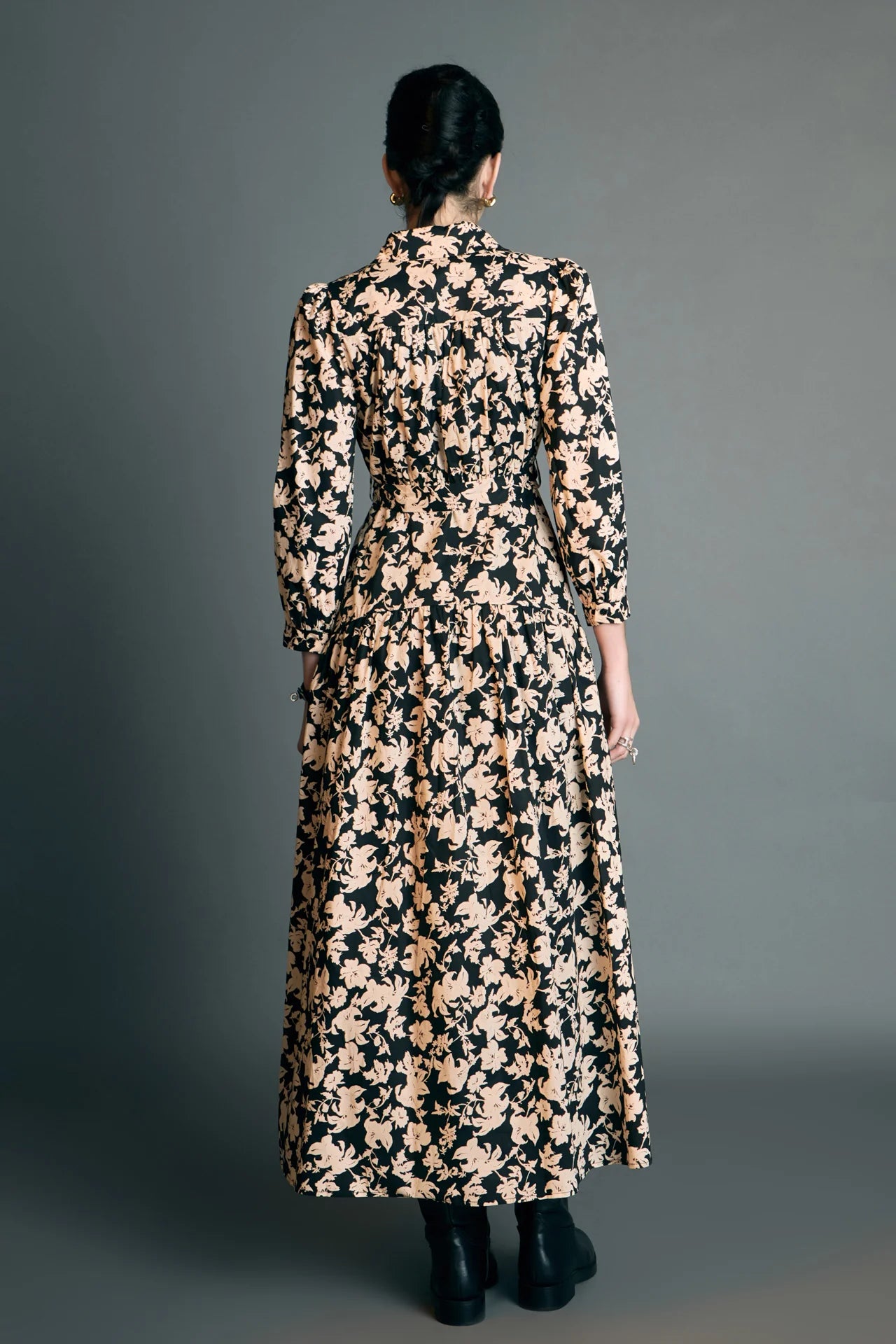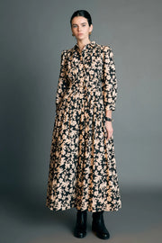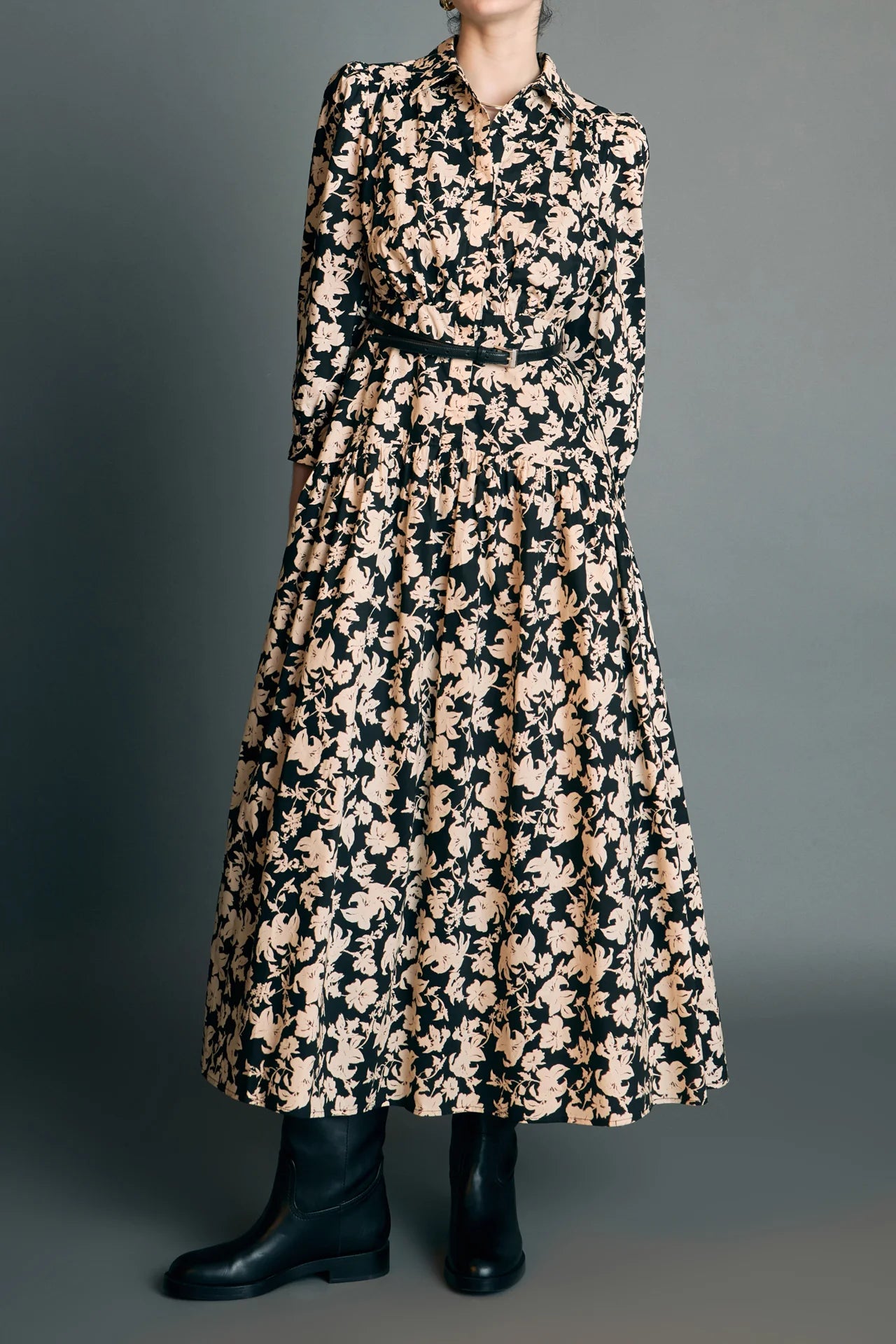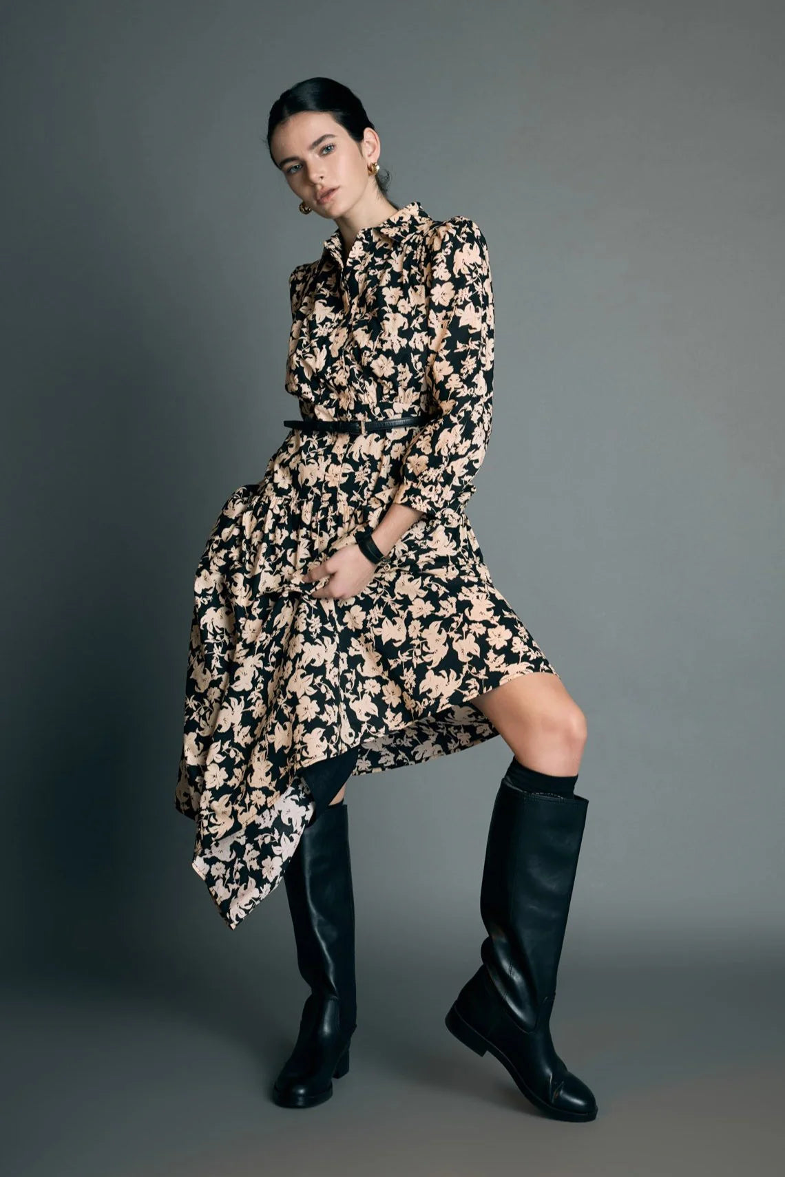 Introducing our must-have dress for the fall season - the Fall Printed Midi Dress! This dress features a flattering midi length that will show off your legs while keeping you cozy. The intricate French-inspired print adds a touch of elegance to this dress making it perfect for both casual and formal occasions. With long sleeves and a hidden button opening in the front this dress offers a classic and timeless silhouette. Plus the side pockets and lining add convenience and comfort to this stylish piece. Hand wash cold and iron low for easy care. Complete your fall wardrobe with this chic midi dress!