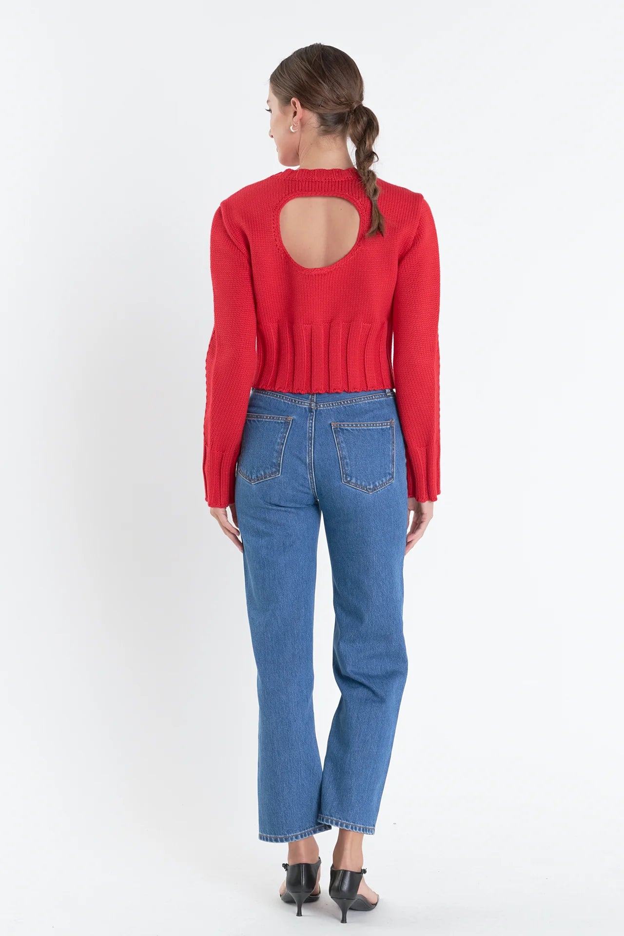 Stay cozy and chic with our Open Back Cropped Sweater. The perfect sweater for any season this piece features a cropped length and round neckline for a modern twist on a classic style. The drop shoulder design adds an effortless element to the overall look. Made with the highest quality materials this sweater is both comfortable and stylish. The open back detail adds a touch of uniqueness to this must-have item. Perfect for layering or wearing on its own this sweater is a versatile addition to any wardrobe. Shop now and stand out from the crowd with our trendy Open Back Cropped Sweater.