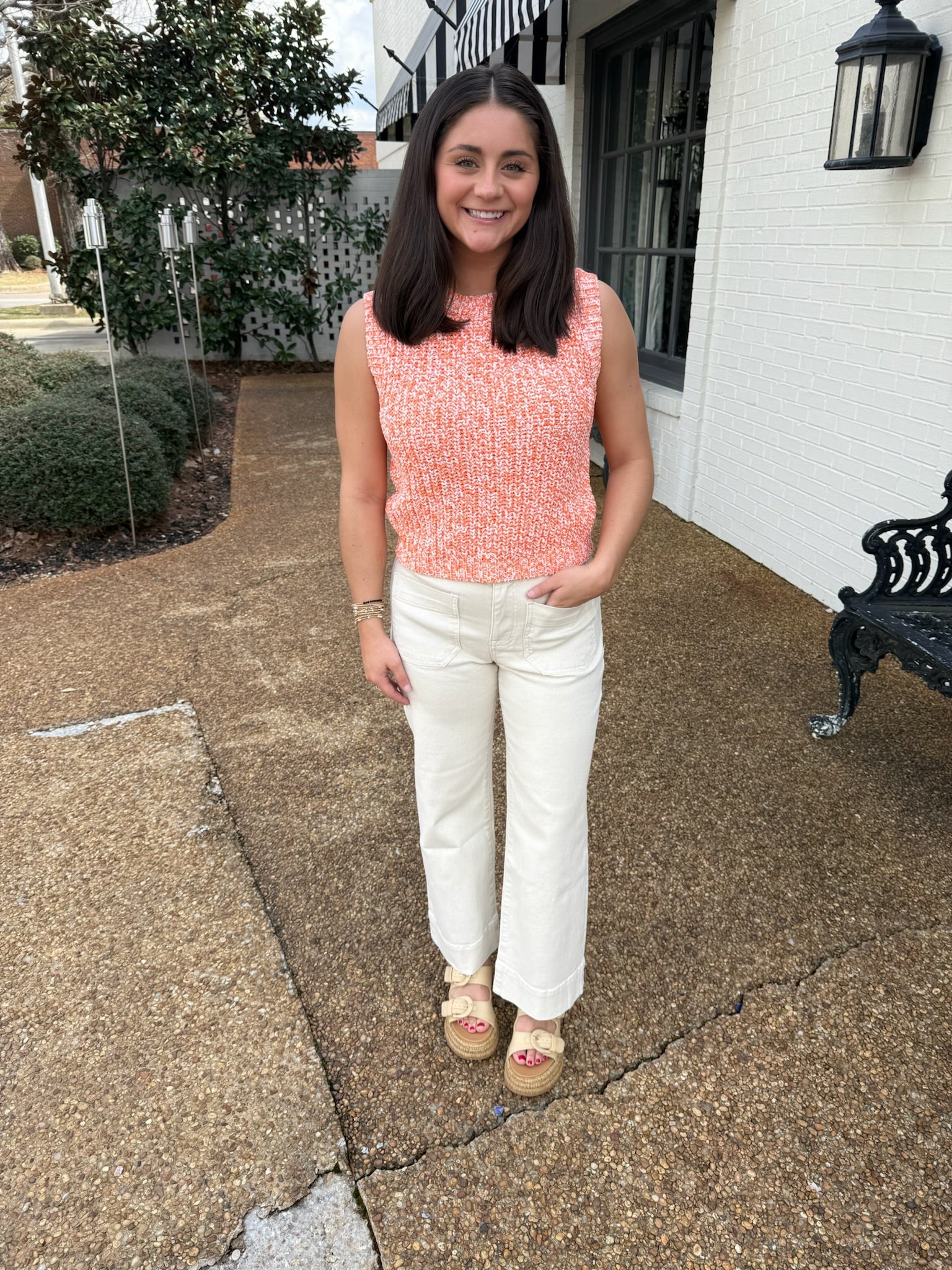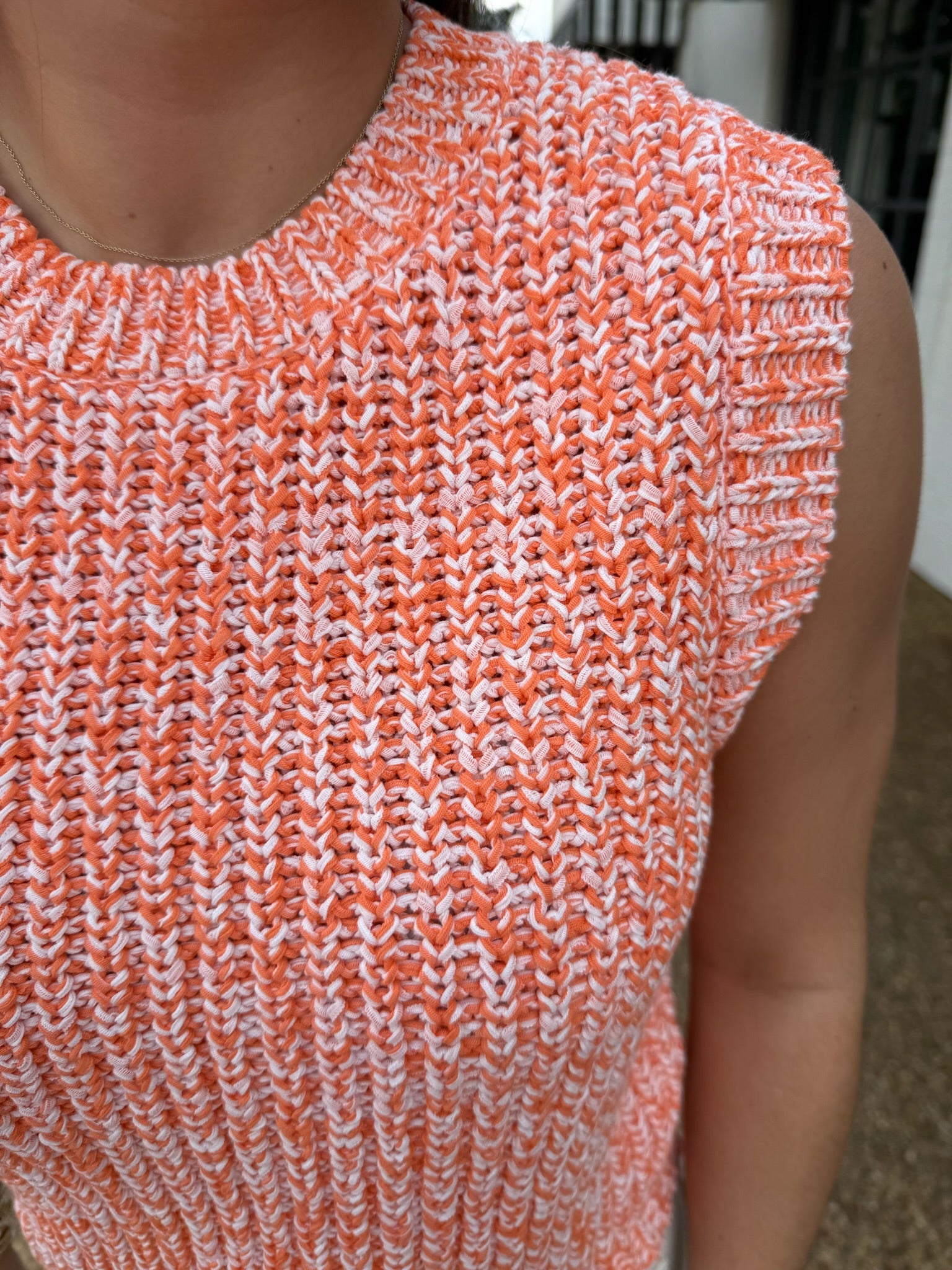 Stay cozy and chic with our Sleeveless Ribbed Knit Sweater. The classic knit pattern and sleeveless design make it perfect for layering or wearing alone on warmer days. Its cropped length and round neckline add a modern touch to this timeless piece. Made with high-quality materials, this sweater combines comfort and style effortlessly. Perfect for any occasion, this versatile sweater will become a staple in your wardrobe. Shop now and elevate your knitwear game with our must-have Sleeveless Ribbed Knit Sweater.