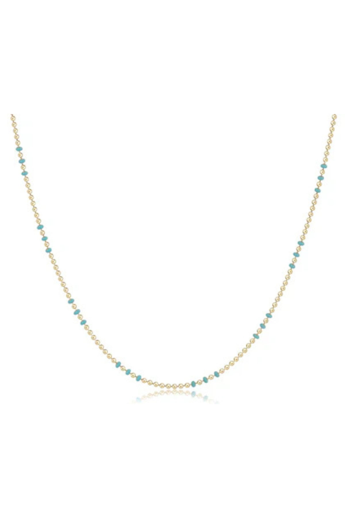 Discover the exquisite Enewton - Necklace - 15in Choker - Hope Joy - Turquoise, a stunning beaded gold chain adorned with elegant Turquoise beads. Designed for worry-free wear, this necklace allows you to sleep, shower, and sweat without any concerns, making it a versatile addition to your jewelry collection. Its unique design layers beautifully with other necklaces, enhancing your style effortlessly. The Enewton - Necklace - 15in Choker - Hope Joy - Turquoise is perfect for any occasion, ensuring you always look your best.
