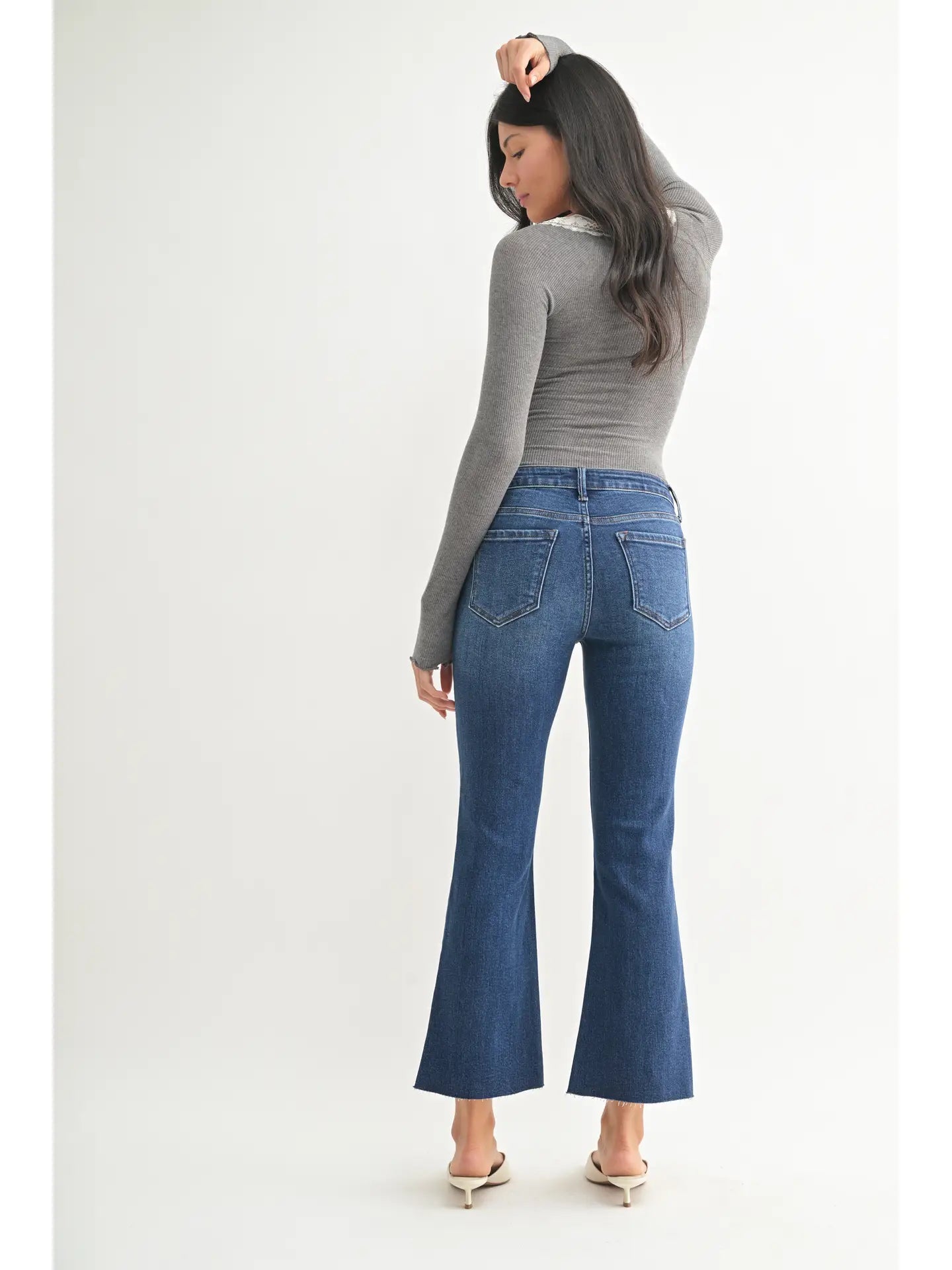 9.5" Rise, 27" Inseam, 9" Opening Dark Denim - Mid Rise Cropped Flare Jean