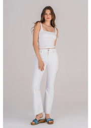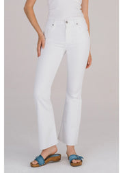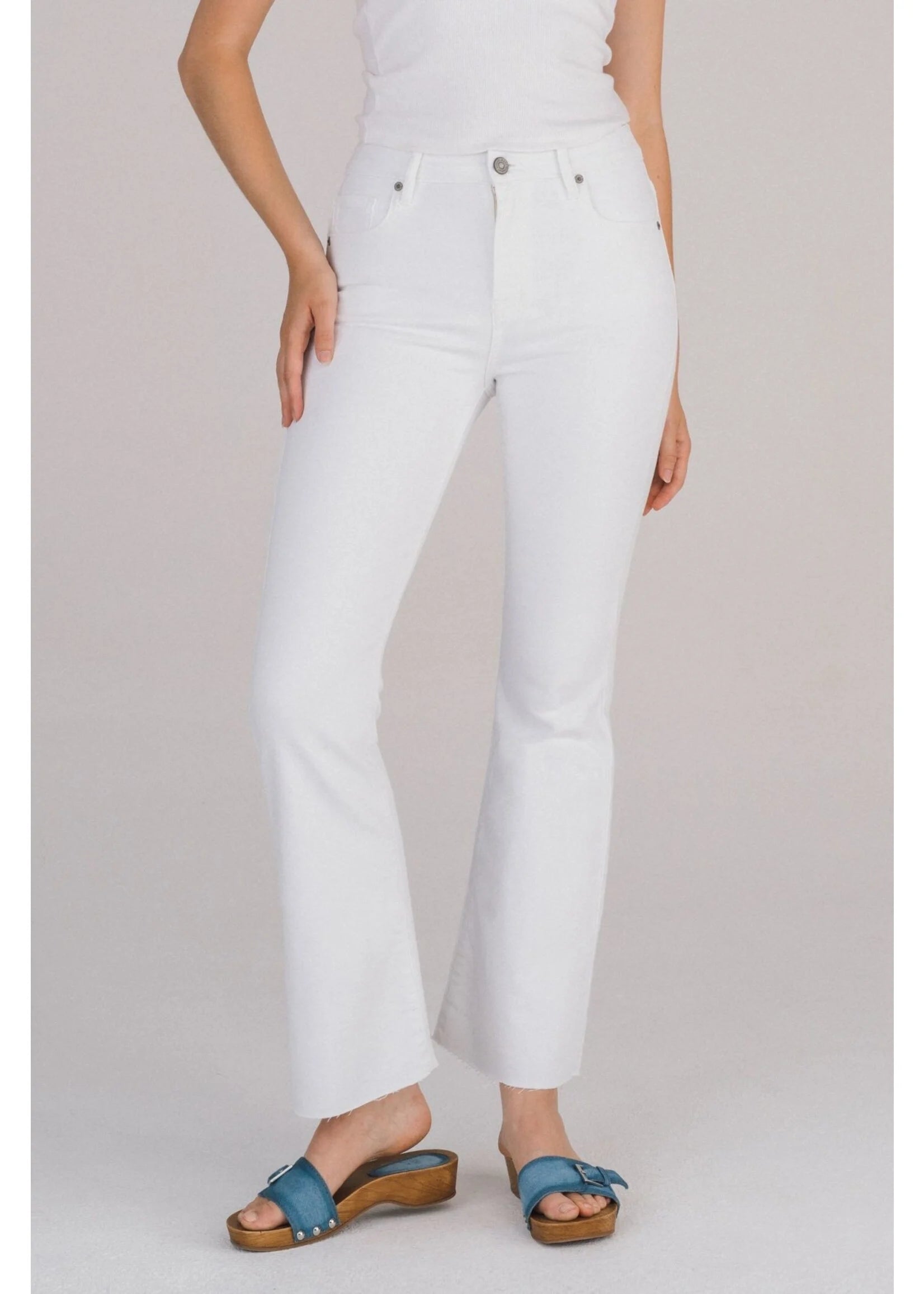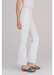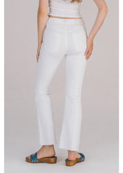 Our white flare jeans feature a 33 inch inseam and a clean cut hem. The perfect clean cut white denim for summer.