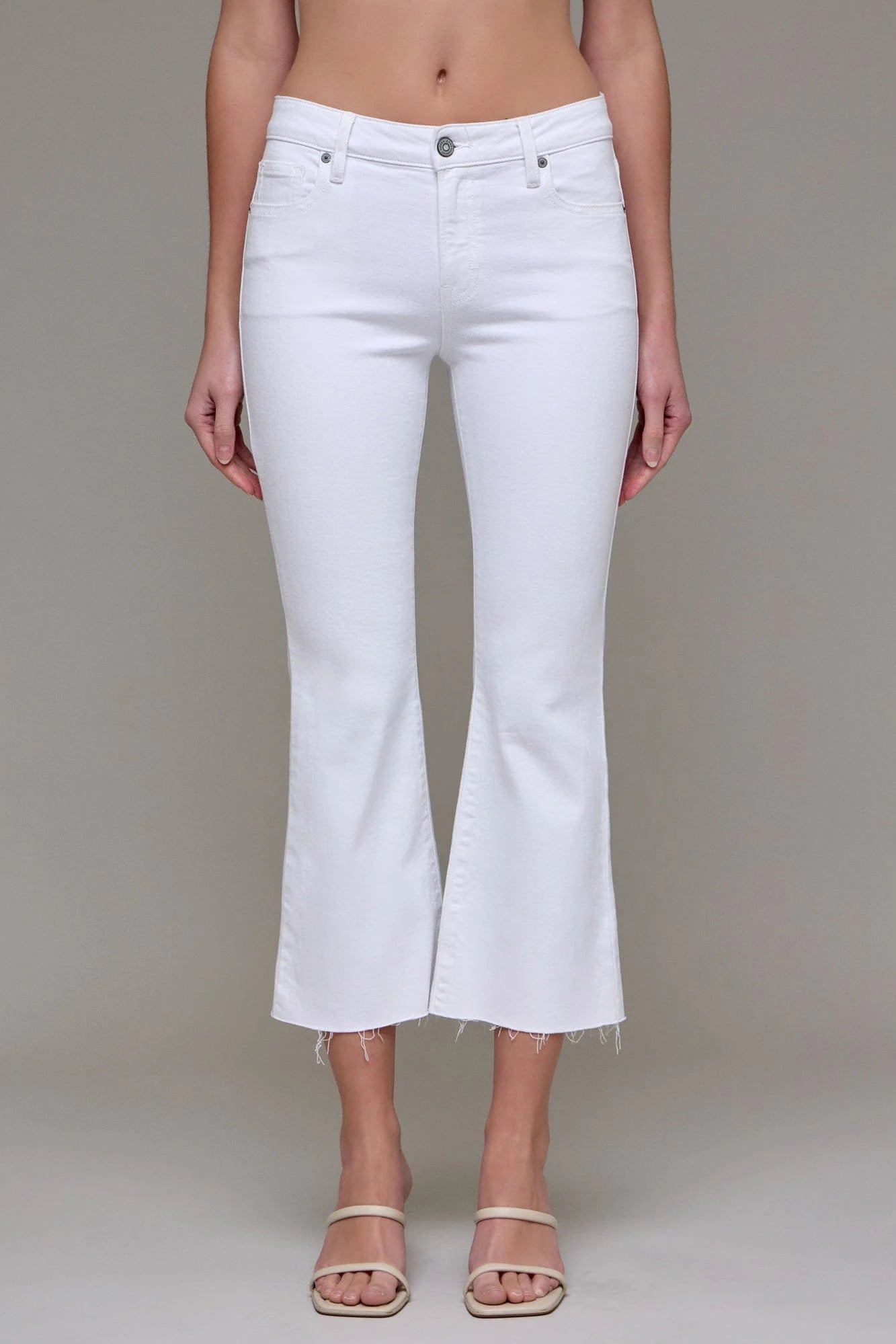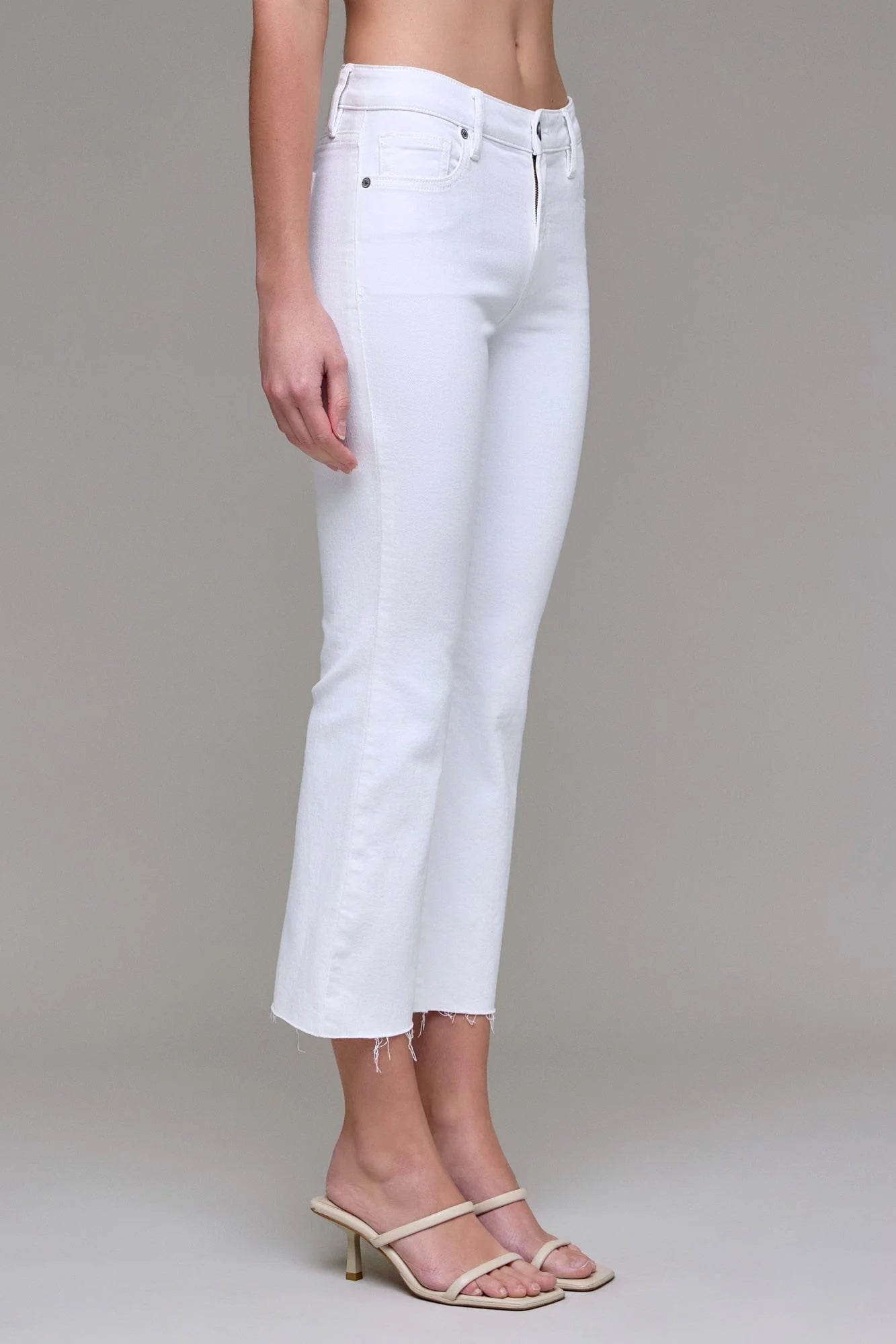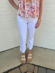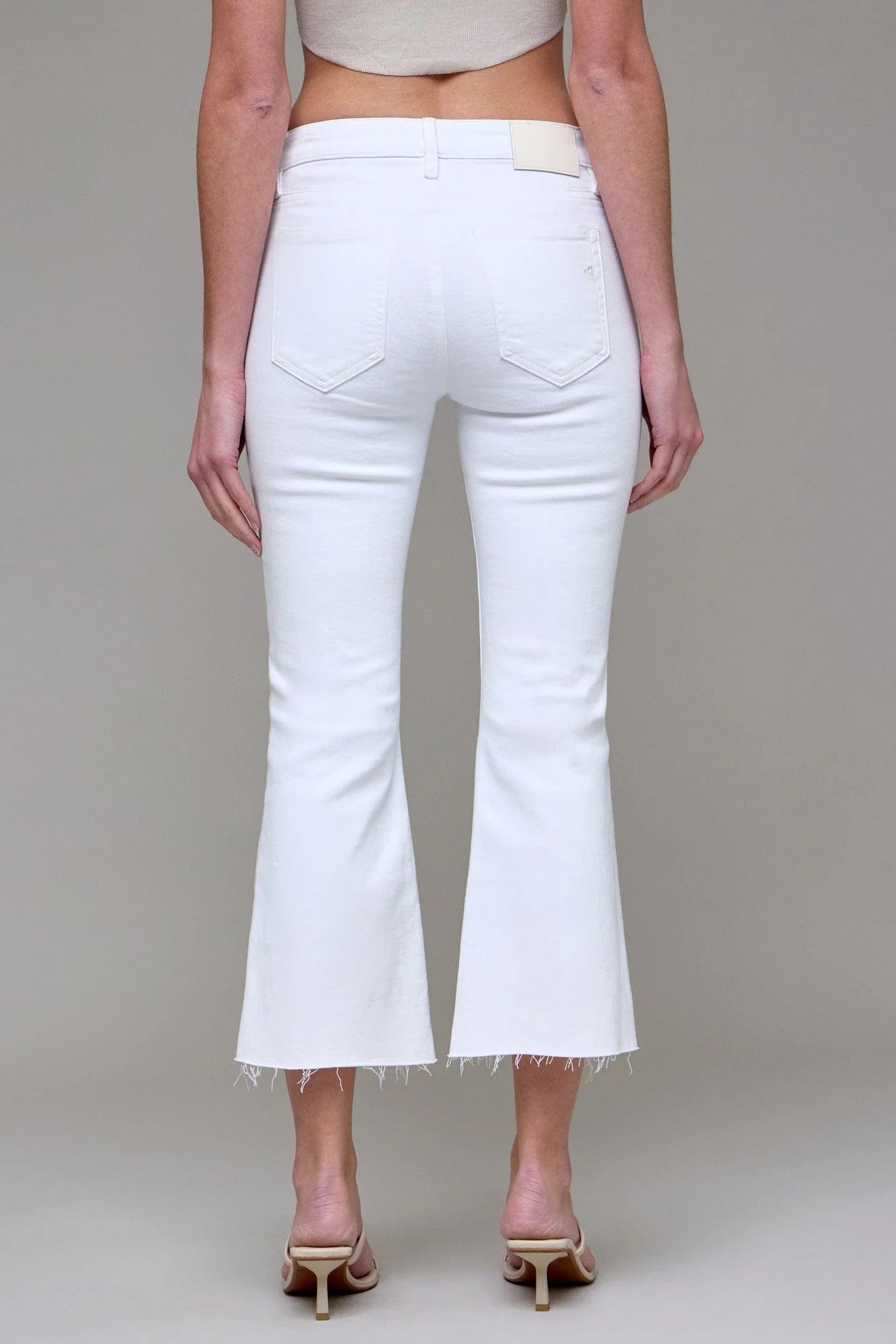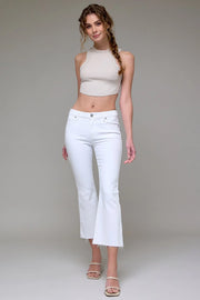 White Clean Cut Cropped Flare