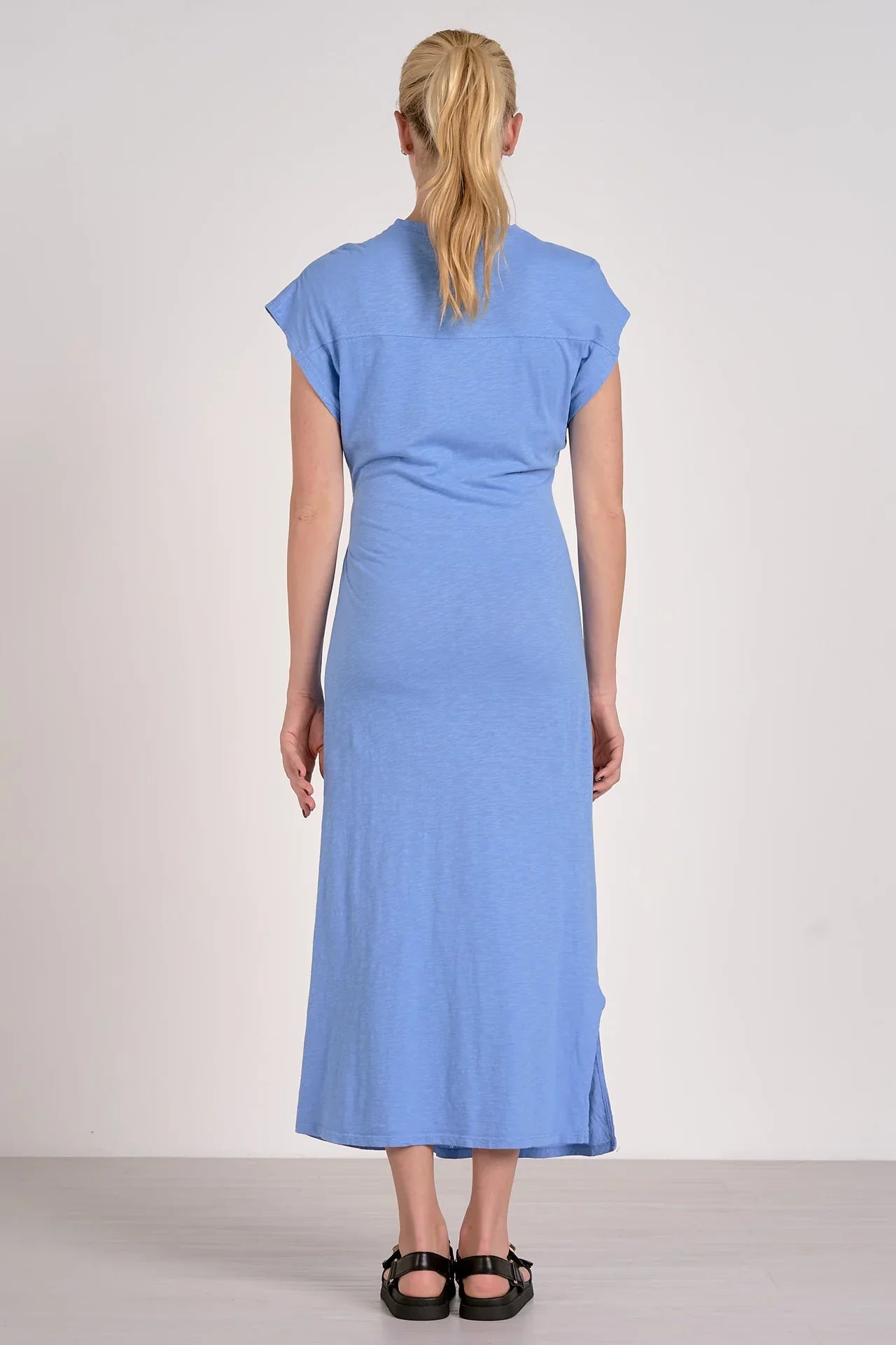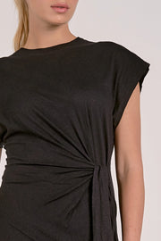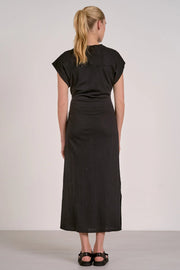 The Jolene Dress is a modern classic that blends style and comfort effortlessly. Featuring cap sleeves and a flattering midi length, this dress is designed to complement any body type. The tie belt detail adds a sophisticated touch, while the slit at the bottom and buttery-soft material make it both elegant and comfortable. Perfect for any occasion.