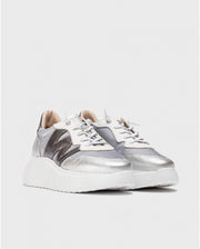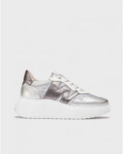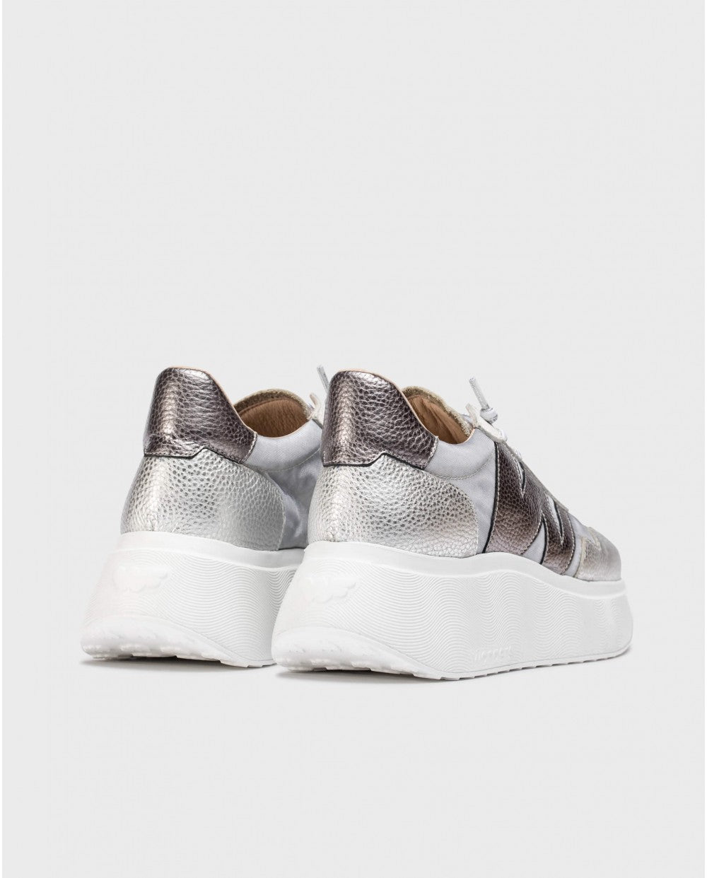 ZENIT sneakers made from a combination of leather and textile in silver and graphite tones. This model features a 5 cm platform at its highest point, offering a modern style and extra comfort. Our iconic "W" in textured leather stands out on the outer side, paired with elastic laces for a practical fit. The WondersFly™ sole ensures unmatched lightness, and the removable MemoryGel insole provides a perfect fit. Get ready to feel the #YesWeFly sensation.
