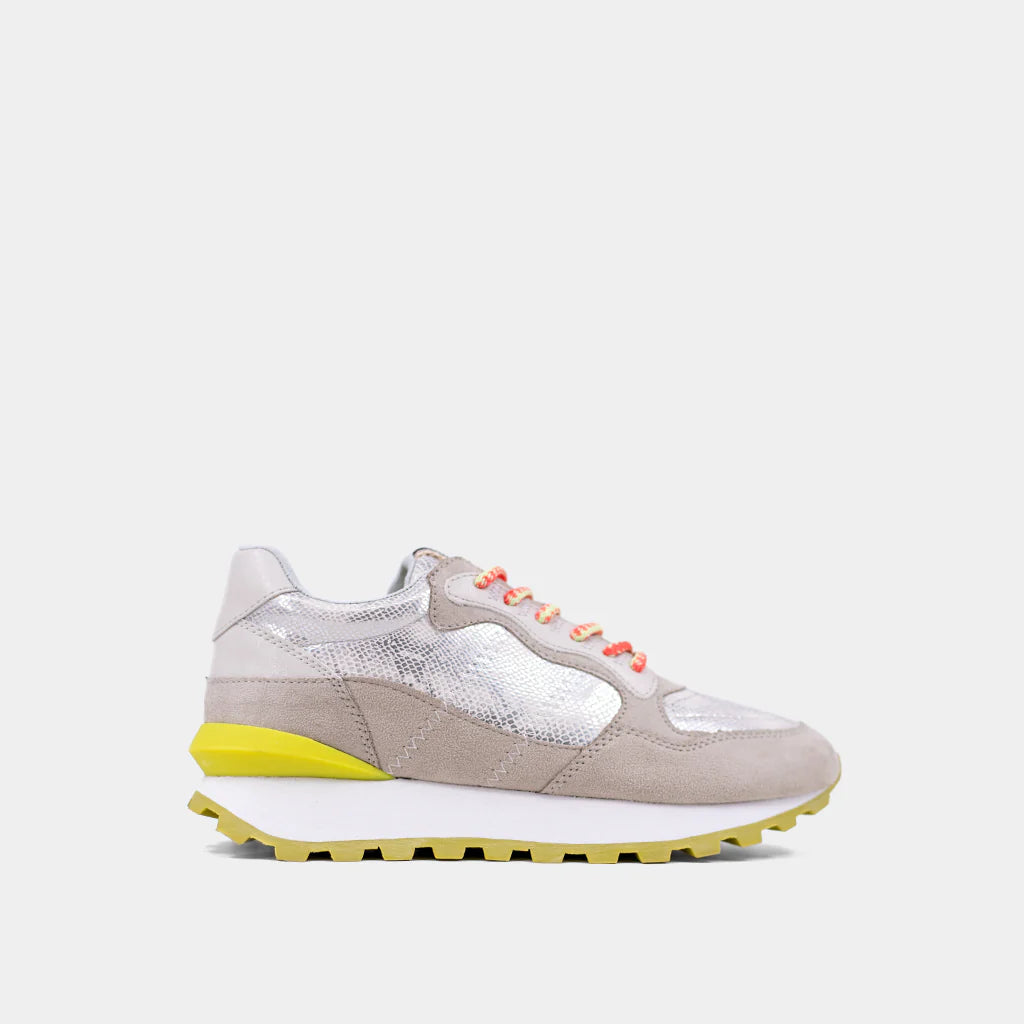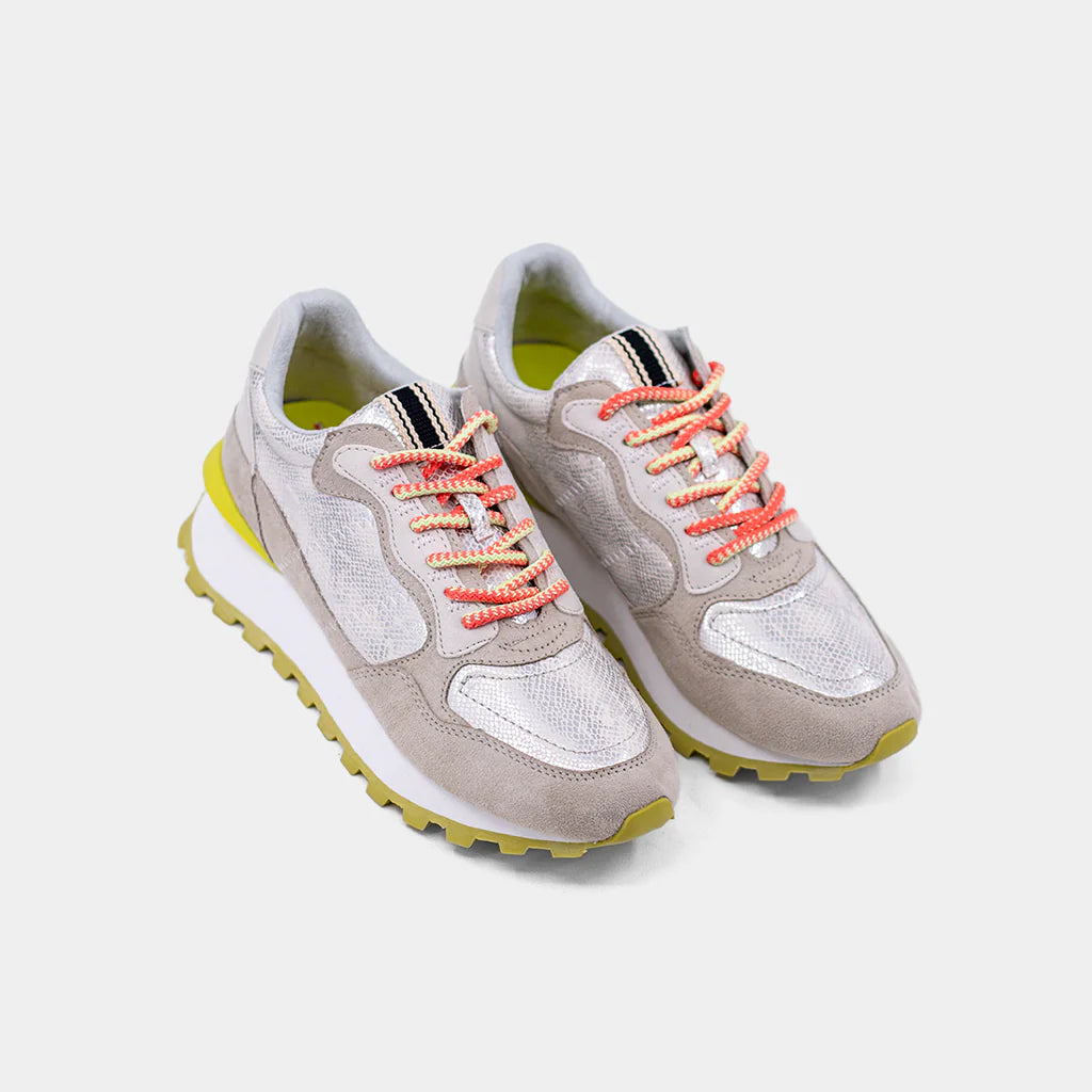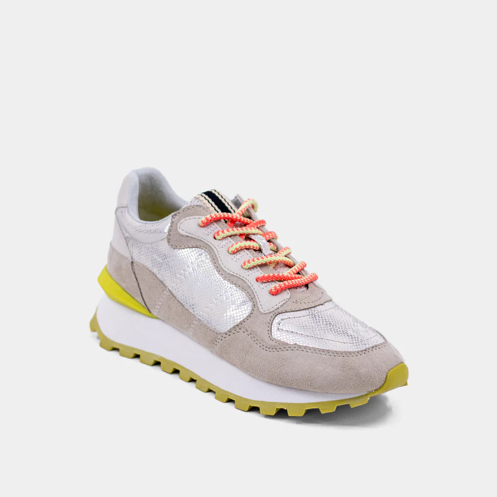 Elevate your everyday style with PHOEBE in Silver Snakewhere bold design meets effortless sophistication. Crafted from premium faux leather with striking snake-textured panels, these sneakers are the ultimate statement piece for your wardrobe. The vibrant yellow sole adds a pop of energy, while the complementary laces tie the look together with finesse. Featuring a cushioned footbed and durable sole for all-day comfort, PHOEBE is perfect for turning heads on casual outings or making an impression on the go. Step into the spotlight with confidence and flair.