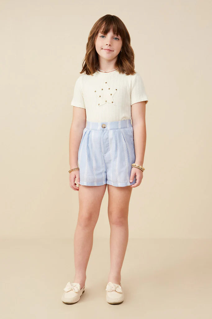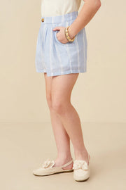 Our Eyelet Lace Striped Buttoned Shorts Features: