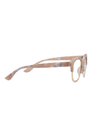 Experience understated elegance with these soft square frames. Georgia combines luxe metallic detailing with a palette inspired by nature's earthy tones such as marble, horn, and tortoise shell. This flattering design provides an effortlessly stylish complement to your ensemble.