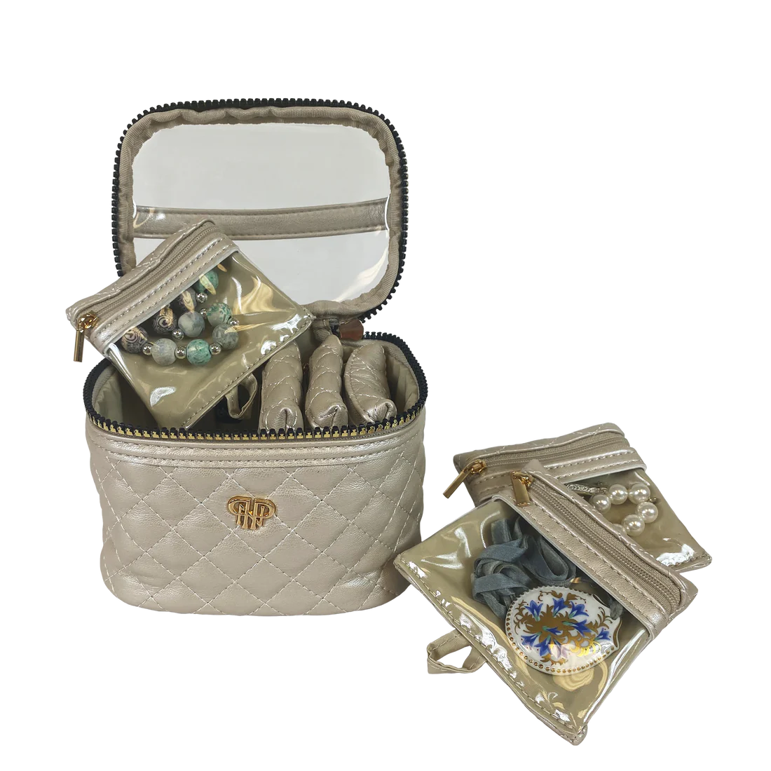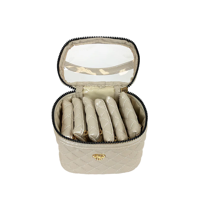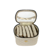 There is nothing more frustrating than misplacing one earring from a set you love. Our clear front removable pouches in our Pearl Getaway Jewelry Case are the solution. Keep your earrings, rings, bracelets and more neatly organized and easy to see. It is the perfect travel case for keeping small to medium jewelry from getting lost or tangled at home or on-the-go. This is one of our customer favorites.