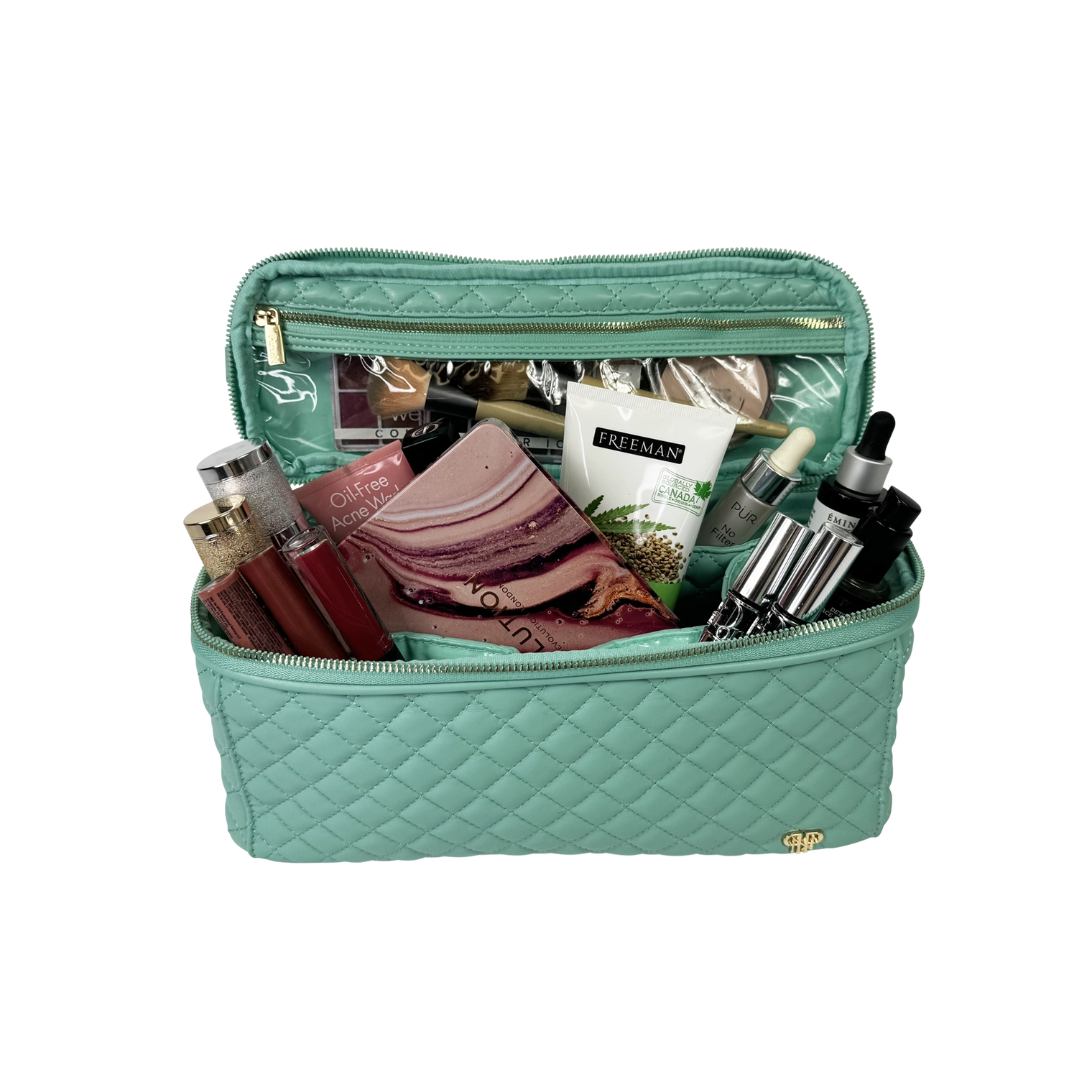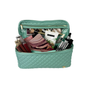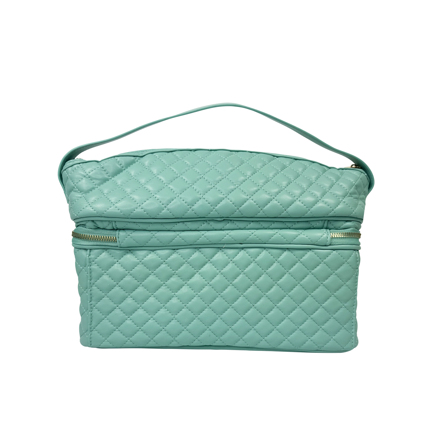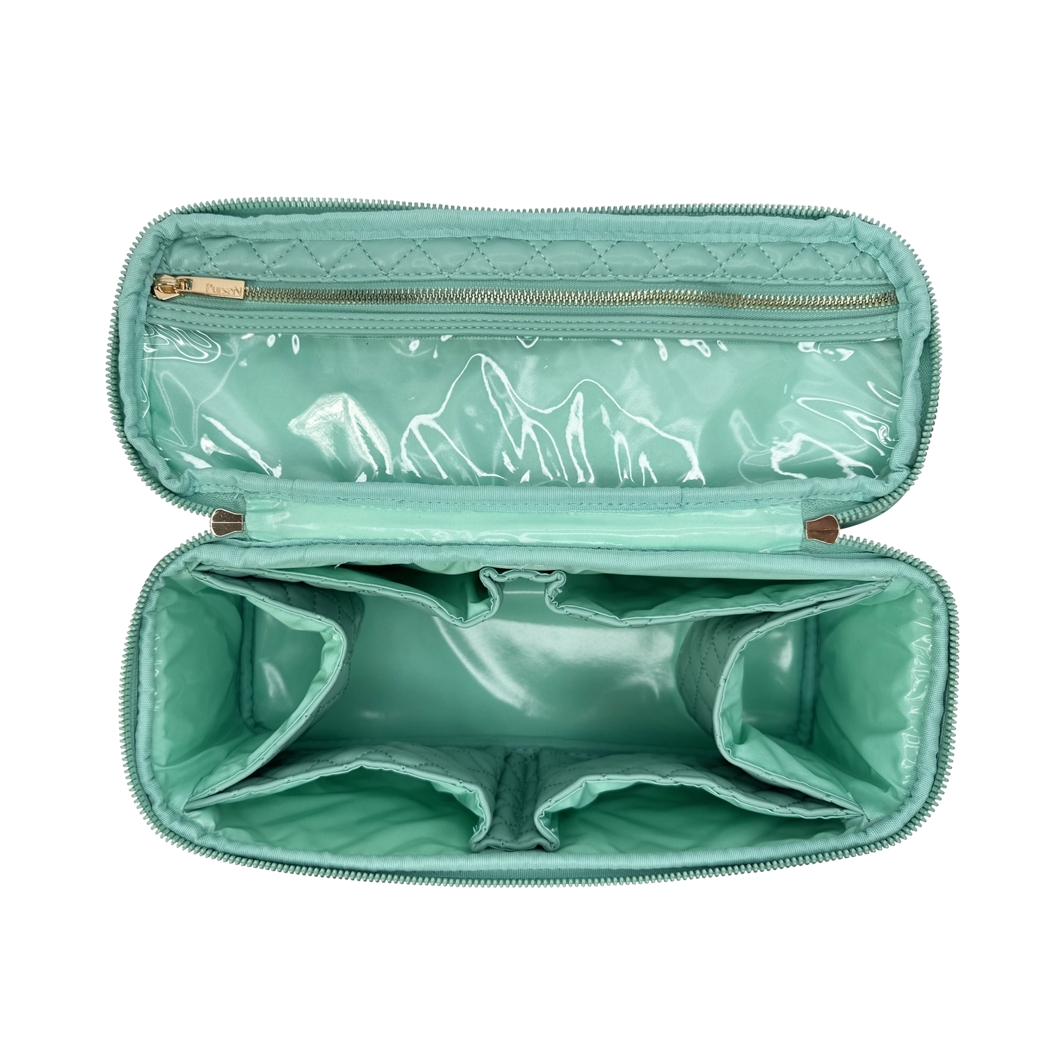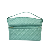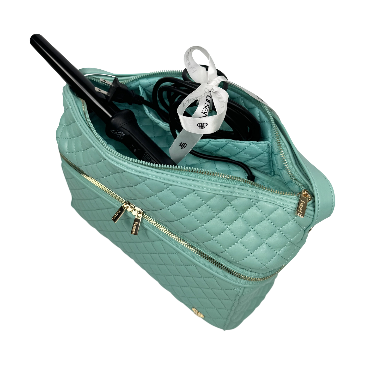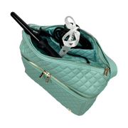 The Turquoise Quart Quilted Stylist Bag is designed for hot styling tools and keeping them separate from your other beauty products. The top compartment features a heat resistant liner so you don’t have to wait to put away your hot tools. The bottom compartment is ideal for larger and heavier items such as bottles, jars, hairbrushes and more. The two combine to make the ultimate toiletry case.