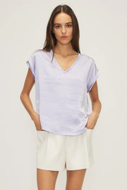 The Natalia Top is as luxurious as it sounds, with a gorgeous lavender silk fabric and a flattering v-neck design.