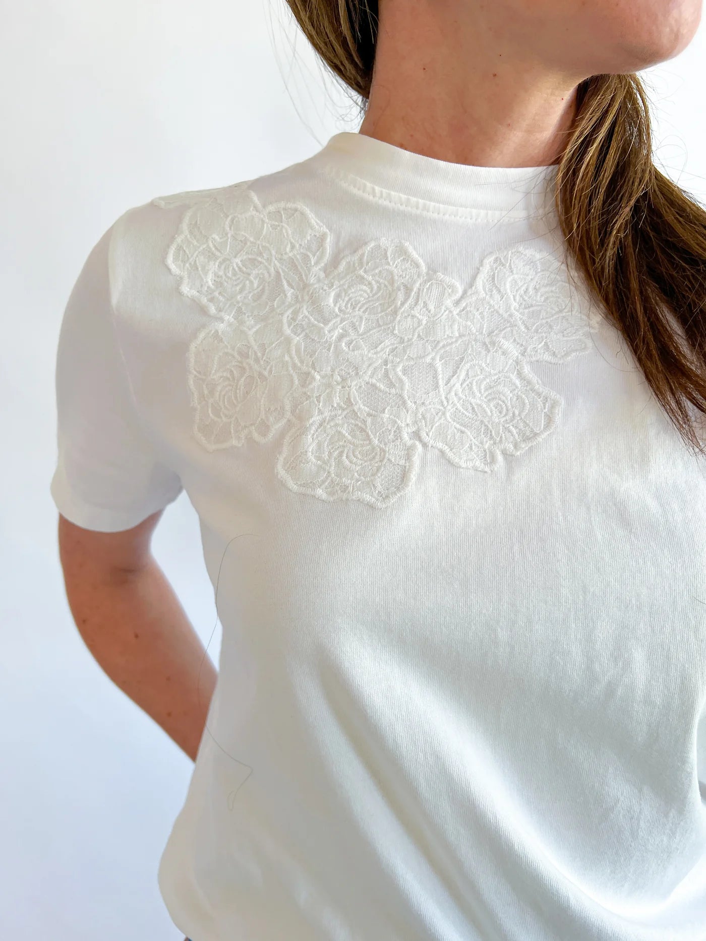 • Floral Applique Detail On Right Side Of Chest