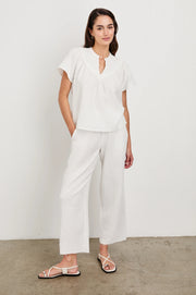 A heritage-inspired top crafted from soft, double-gauze cotton. With a v-neckline, baby doll body, and flared sleeve, the Sayer is an airy essential for the warmer months.