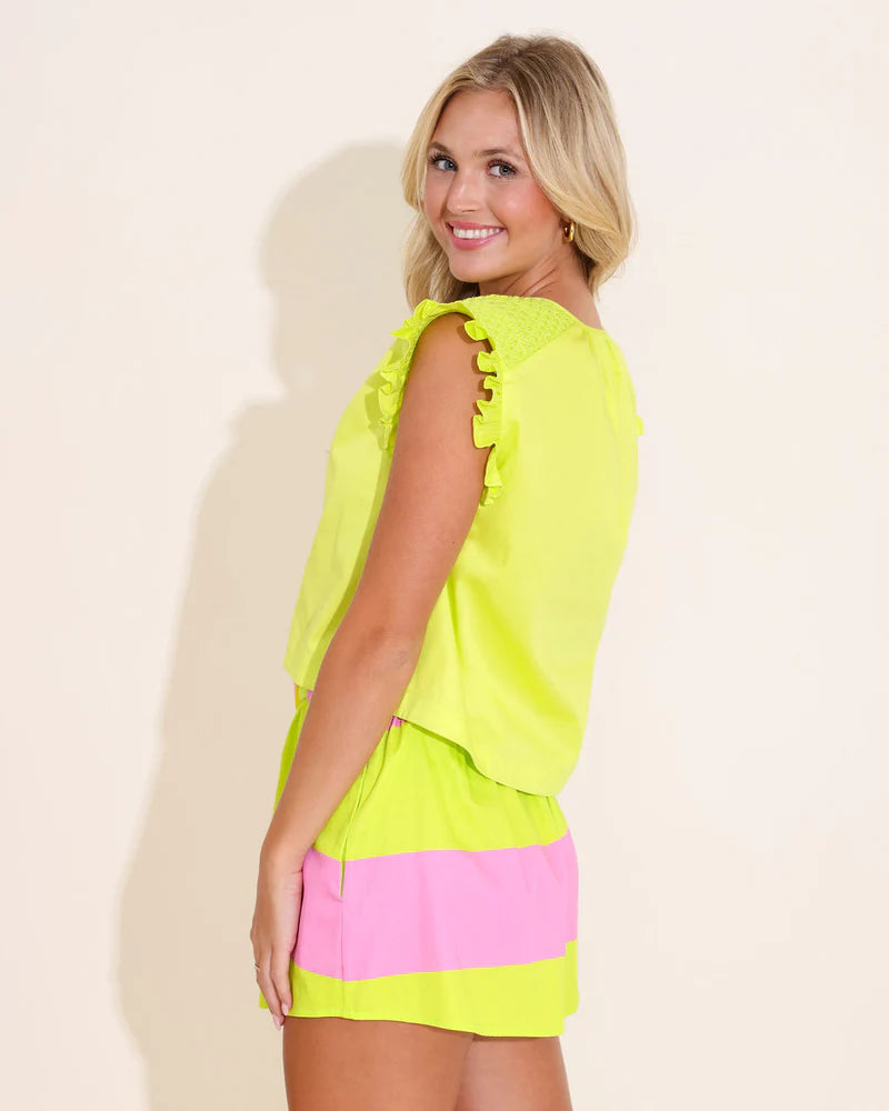 The Gigi top is back in our new citrus color way! It features a cap sleeve with smock detailing, a v-neckline, and a boxy fit for maximum comfort and cuteness! Pair with our James short in cabana for the full look.