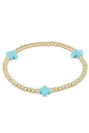 Signature Cross Gold Pattern 3mm Bead Bracelet - Turquoise | enewton