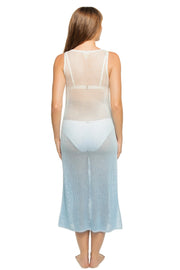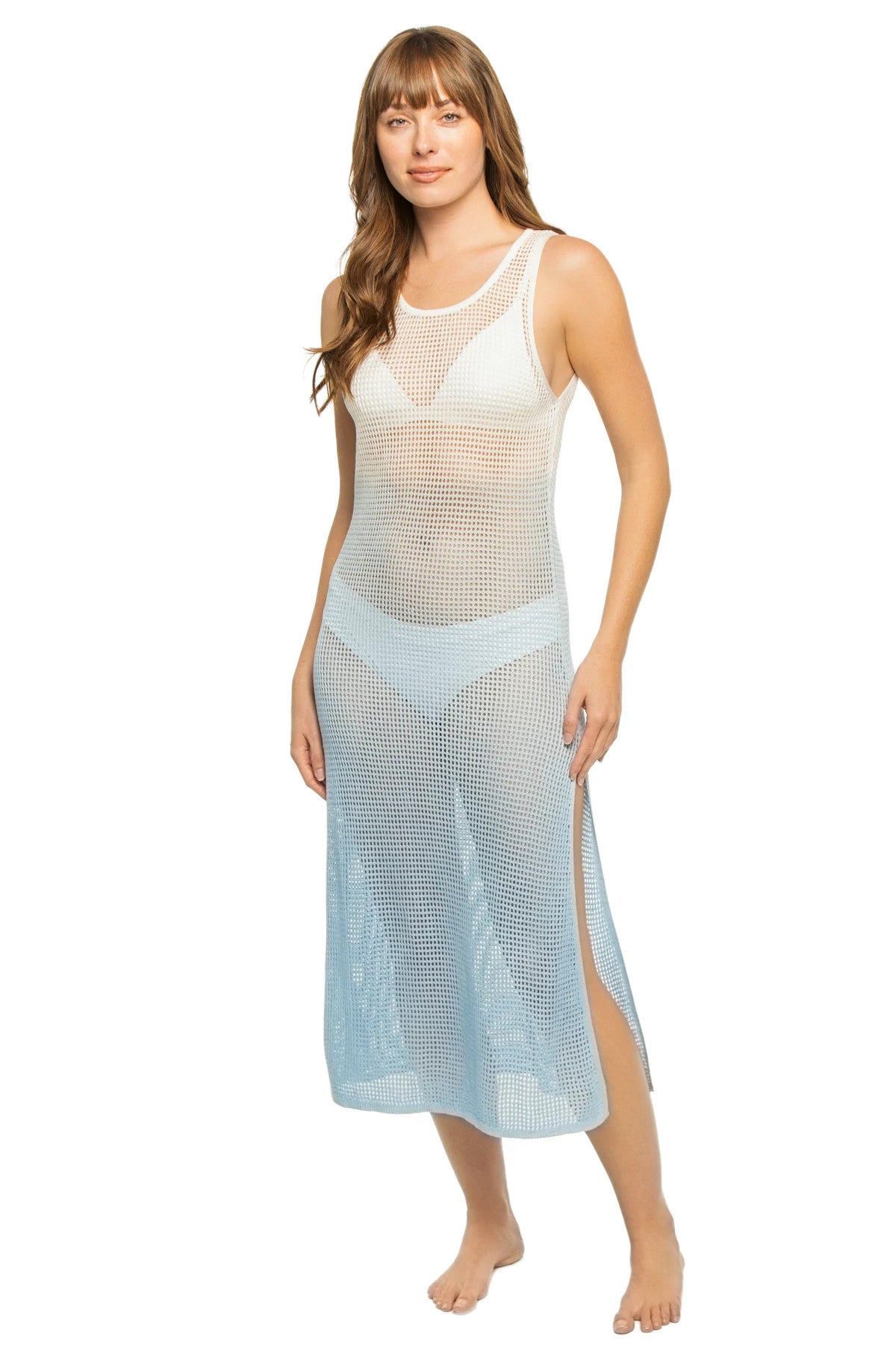 Open weave midi dress features ombre pattern, comfortable tank style and offers high side slits.