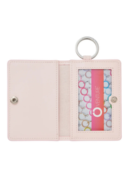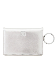 Crafted from premium smooth silver leather, this stylish wallet features two clear ID windows, multiple card slots, and an interior pocket perfect for folded cash or small essentials. The secure snap closure keeps everything safely in place, while the attached split ring lets you easily attach it to your keys, handbag, or lanyard for hands-free carry.