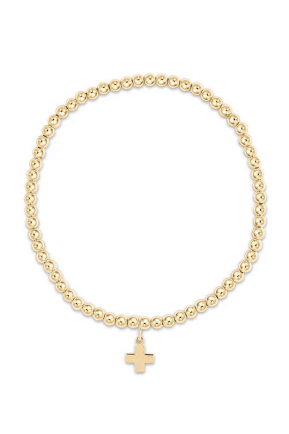 Classic Gold 3mm Bead Bracelet - Signature Cross Gold Charm | enewton