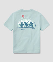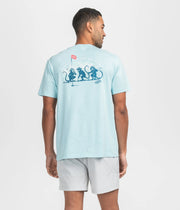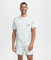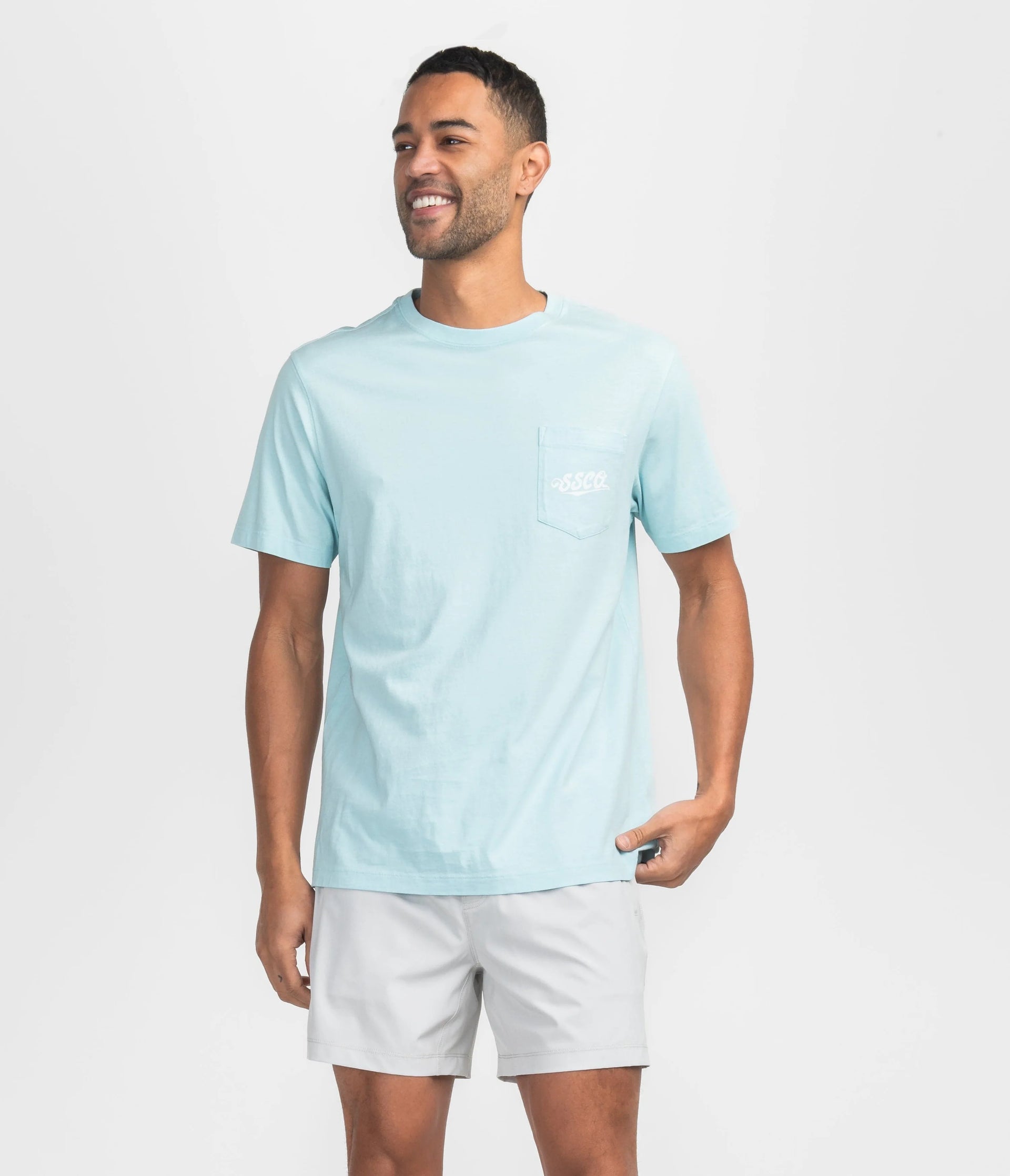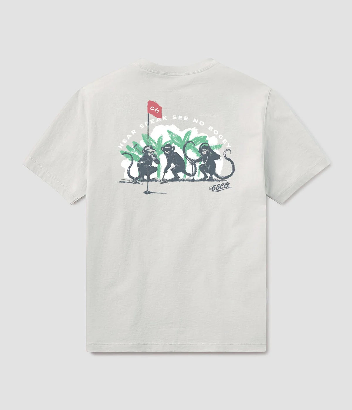Shayne is 6'3" and is wearing a medium in No Bogey Tee in Oyster.